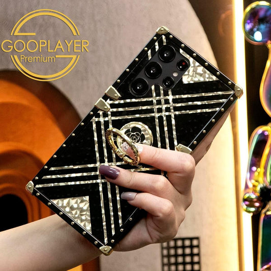Luxury Classic Leather Lock Anti Drop Heavy Duty Protection Phone Case For Samsung S25 S24 S23 S22 S21 Note20 A15 A25 A35 A55 Fashion Square Case Back Cover For iPhone 16 15 14 13 12 11 X XR