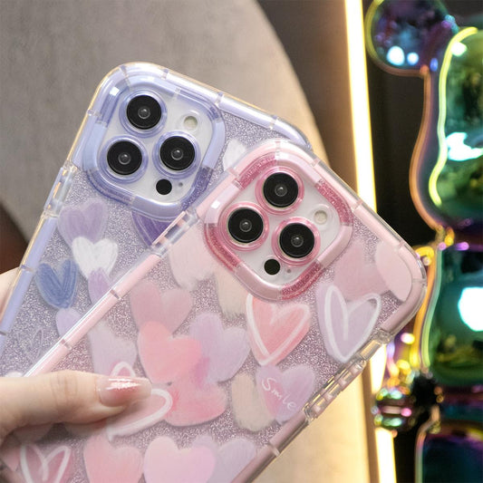Love Heart Soft Shockproof Bumper Transparent Phone Case With Woven Wristband for iPhone 15 14 13 12 11 Plus Pro Max