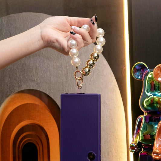 Liquid Silicone Matte Shockproof Phone Case with Pearl Metal Wristband For iPhone 16 15 14 13 12 11 XR XSMax X/XS Camera Protect Soft Cover