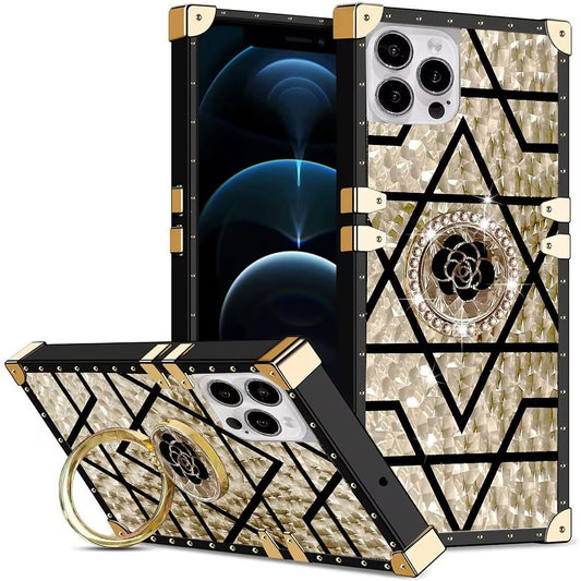 Luxury Glitter Retro Astral Phantom TPU Shockproof Phone Cover with Ring Kickstand For iPhone 16 15 14 13 12 11 X/XS XSMax XR Fashion Geometric Square Soft Phone Case