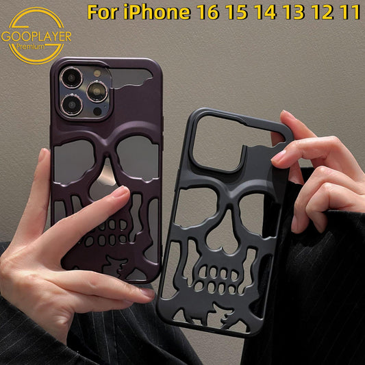 For iPhone 16 15 14 13 12 11 Pro Max Phone Case, Plating Thin Skull Hollow Heat Dissipation TPU Shockproof Case Cooling Soft Back Cover