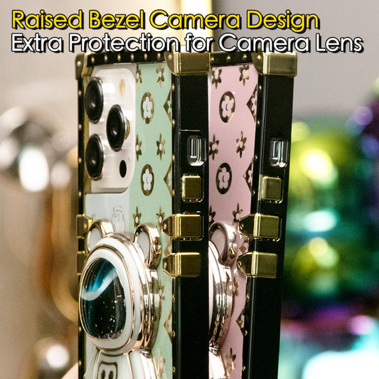 For iPhone 16 15 14 13 12 11 Pro Max XS XR XSMax Phone Case, Quicksand Bear Kickstand, Square Electroplate Luxury Elegant Case Pop Stand Shockproof Soft Full Cover