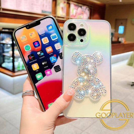 Gradient Crystal Diamond Bear Phone Case for iPhone 16 15 14 13 12 Pro Max