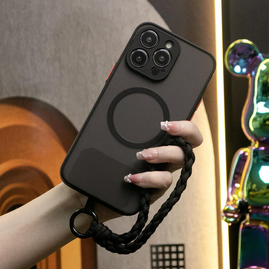 Luxury Matte Clear Support Magnetic Hard Phone Case For Magsafe With Woven Wristband For iPhone 16 15 14 13 12 11 XR XSMax X/XS