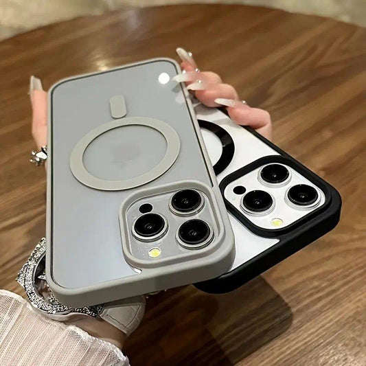 Retro Matte Transparent Magnetic Wireless Charging Compatible Case for iPhone 16ProMax 16 15 14 13 12 Pro Max - Shockproof PC Acrylic Hard Phone Cover