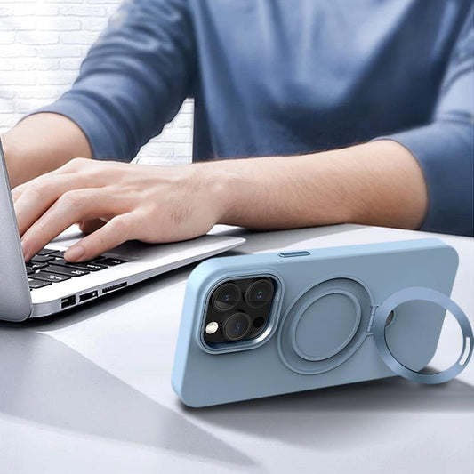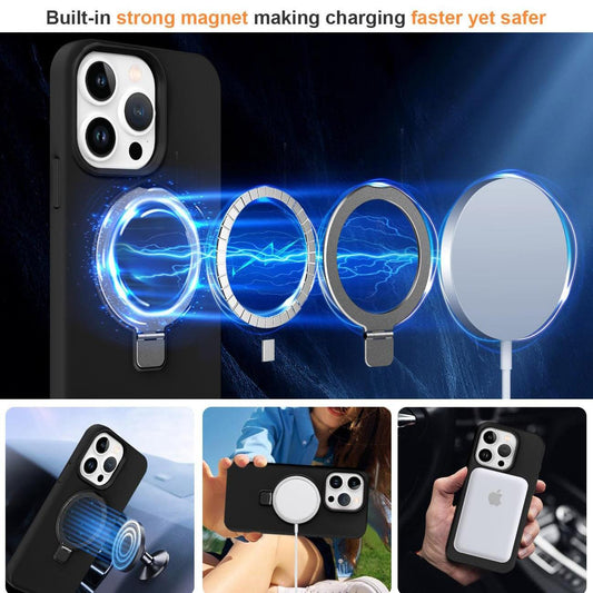 Strong Magnetic Kickstand Phone Case For iPhone 16 15 14 13 12 for MagSafe, Skin-friendly Liquid Silicone Shockproof with Microfiber Lining Full Cover