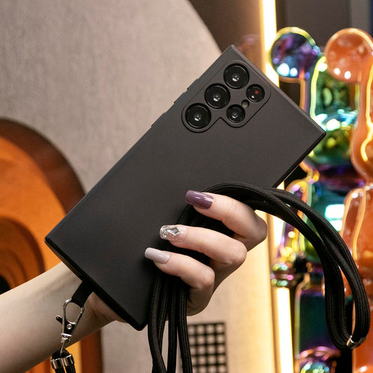 Silicone Matte Phone Case With Long Lanyard Accessories For iPhone 16 15 14 13 12 11 XR XSMax X/XS Camera Protect Soft Cover