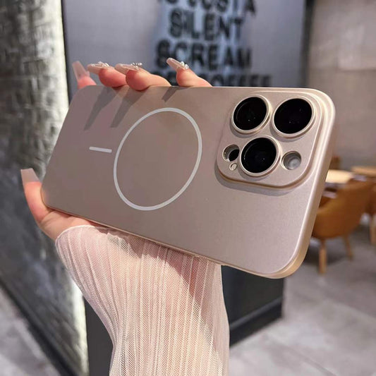 Slim Matte Fine Ring Metallic Glossy Strong Magnetic PC Phone Case For iPhone 16ProMax 16 15 14 13 12 11 Hand Feel Hard Full Cover