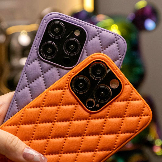Elegant Lattice Leather Hard Phone Case for iPhone 16 15 14 13 12 Pro Max Full Cover