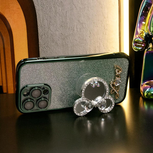 For iPhone 16 15 14 13 Pro Max Phone Case, Clear Gradient Glitter Mouse Head Mirror Kickstand TPU Luxury Plating Slim Soft Full Cover