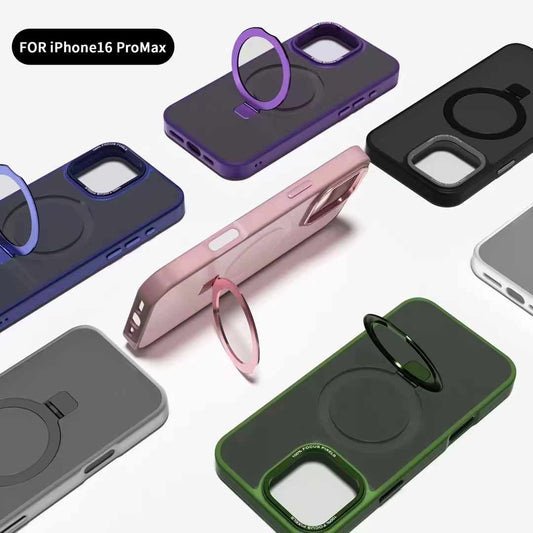 For iPhone 16 15 14 13 12 Pro Max, 360 Degree Rotation Kickstand Holder Matte Magnetic Luxury PC Anti-Fall Shockproof Hard Phone Case Wireless Charging Full Cover