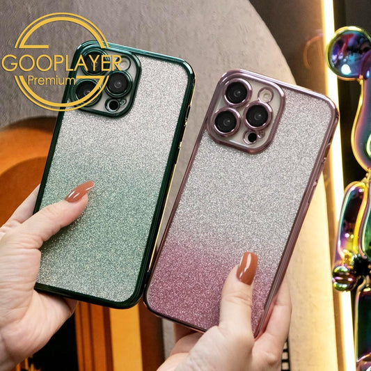 For iPhone 16 15 14 13 Pro Max Phone Case, Clear Gradient Glitter TPU Luxury Plating Slim Soft Full Cover