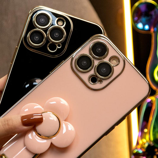 For iPhone 16 15 14 13 12 Pro Max Phone Case, Windmill Kickstand with Bracelet, Plating Electroplate Luxury Elegant Case Camera Protector Pop Stand Shockproof Soft Cover