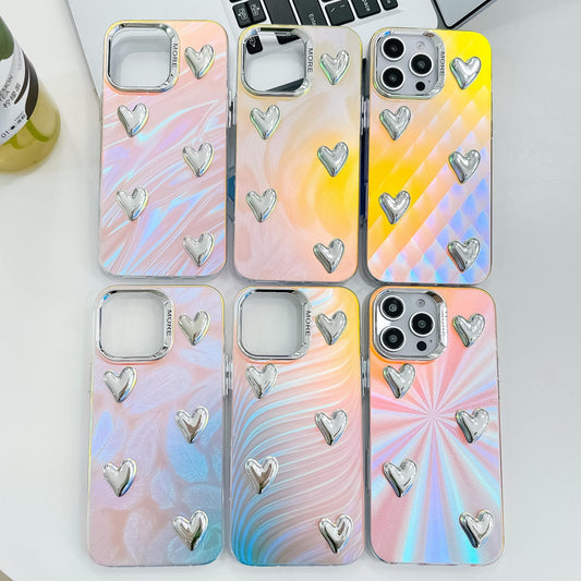 For iPhone 16ProMax 16 15 14 13 Phone Case, Electroplating Laser Love Heart Pattern Acrylic Slim, Camera Protection Non-Yellowing Hard Cover