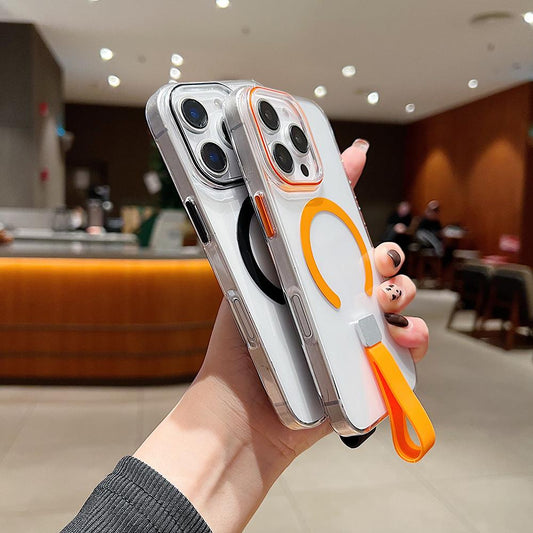 Colorful Crystal High Definition Clear C Pattern Magnetic Phone Case with Silicone Wristband For iPhone 16ProMax 16 15 14 13 Pro Max Plus Transparent HD Len Protection Hard Full Cover