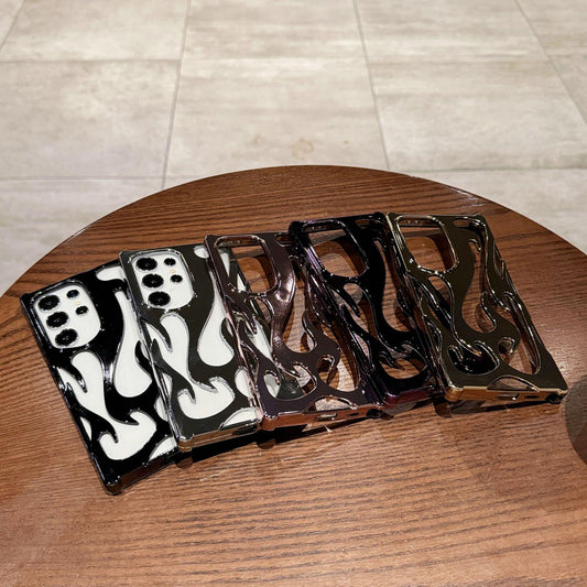 Heat Dissipation Four Corner Shockproof Plating/Matte Fire Pattern Hollow Out Cooling Phone Case For Samsung S25Ultra S24 S23 S22 A14 A15 A16 A06 A54 A55 Soft Full Cover