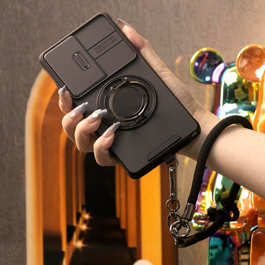 Removable Dust-proof Lens Cap Protection Phone Case 360 Rotating Metal Kickstand Wristband For Samsung S25Ultra S24 S23 S22 S21 Note20 A06 A15 A16 A25 A35 A36 A53 A54 A55 Shockproof Cover