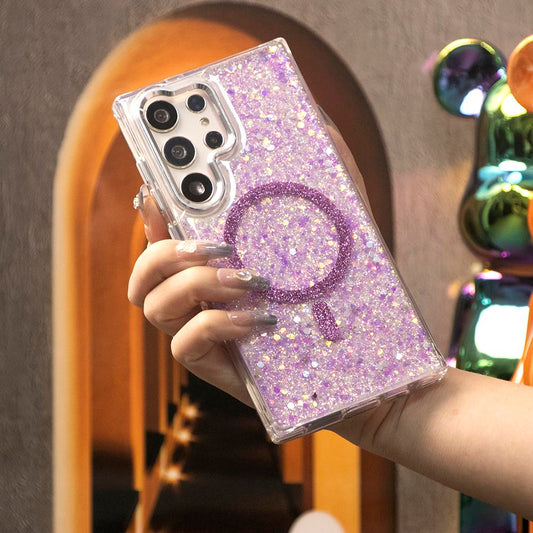 Glitter Glitter Transparent Strong Magnetic For Magsafe Phone Case For Samsung S25Ultra S25+ S25 S24 S23 A14 A15 A16 A24 A25 A34 A35 A54 A55 Metal Frame Shockproof Bumper Acrylic Hard Cover