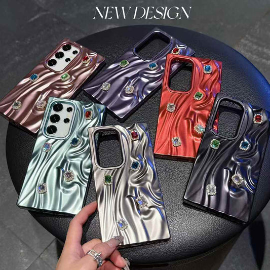 For Samsung S25Ultra S25 S24 A56 A55 A54 A36 A35 A26 A25 A16 A15, Rhinestone Fancy Shape Cool Wrinkled Tin Foil Pattern Plating Hollow Heat Dissipation Case Cooling Soft Back Cover