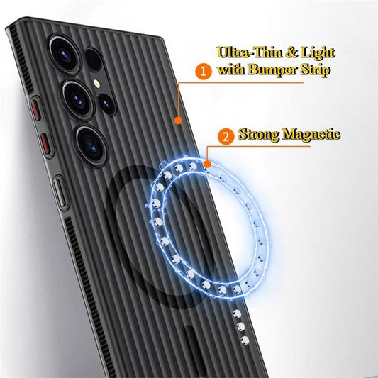 Corrugated Grille Magnetic Hard Polycarbonate Ultra-Thin Light Shockproof Phone Case with Bumper Strip for Samsung S25Ultra S24 S23 Matte Frozen Fog Thin High Transparency Full Cover