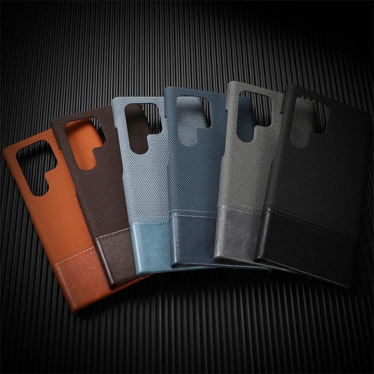 For Samsung S25Ultra S24Ultra S23Ultra Phone Case, Antislip Two-Tune Leather Denim Style Slim Matte Fabrics Pattern Len Protection Shockproof Hard Full Cover