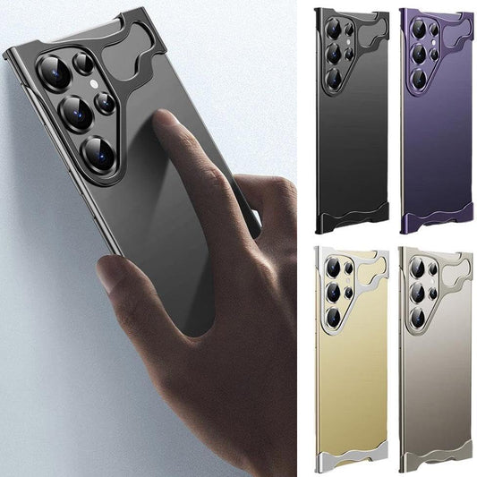 Special-Shaped Metal Corner Anti-Fall Shockproof Phone Case Suitable for Samsung S23Ultra S24Ultra, Borderless Slim No Back Bumper with Camera Cover Bumper Phone Case