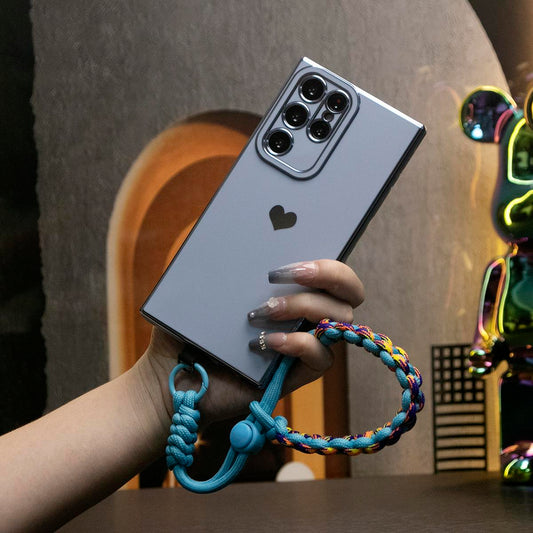Luxury Love Heart Side Pattern Plating Basic Phone Case With Multifunctional Climbing Rope For Samsung S24Ultra S24FE S24 S23 S22 S21 FE Plus Ultra