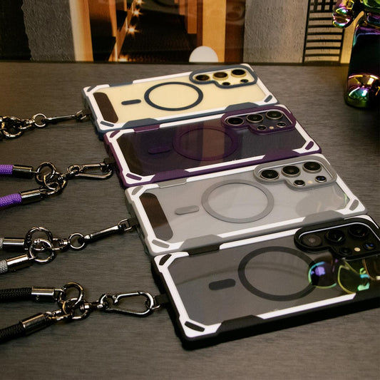 Gradient Color Magnetic Wireless Charge Matte Case With Adjustable Woven Strap For Samsung Galaxy S24FE S24Ultra S24 S23 S22 S21 Plus Ultra Note 20 Ultra Wireless Charging Soft Bumper Cover