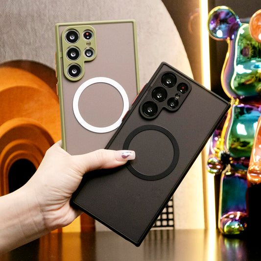 Matte Clear Magnetic Two-tone Slim PC Phone Case For Samsung S25Ultra S24 S23 S22 S21 Note20Ultra Transparent Skin Feel Bumper Shockproof Hard Full Cover