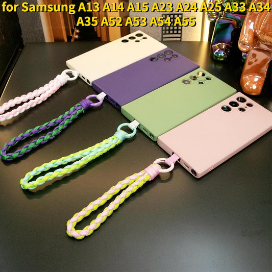 Silicone Matte Phone Case with Braided Rope Bracelet for Samsung A13 A14 A15 A23 A24 A25 A33 A34 A35 A52 A53 A54 A55 Note20 Ultra