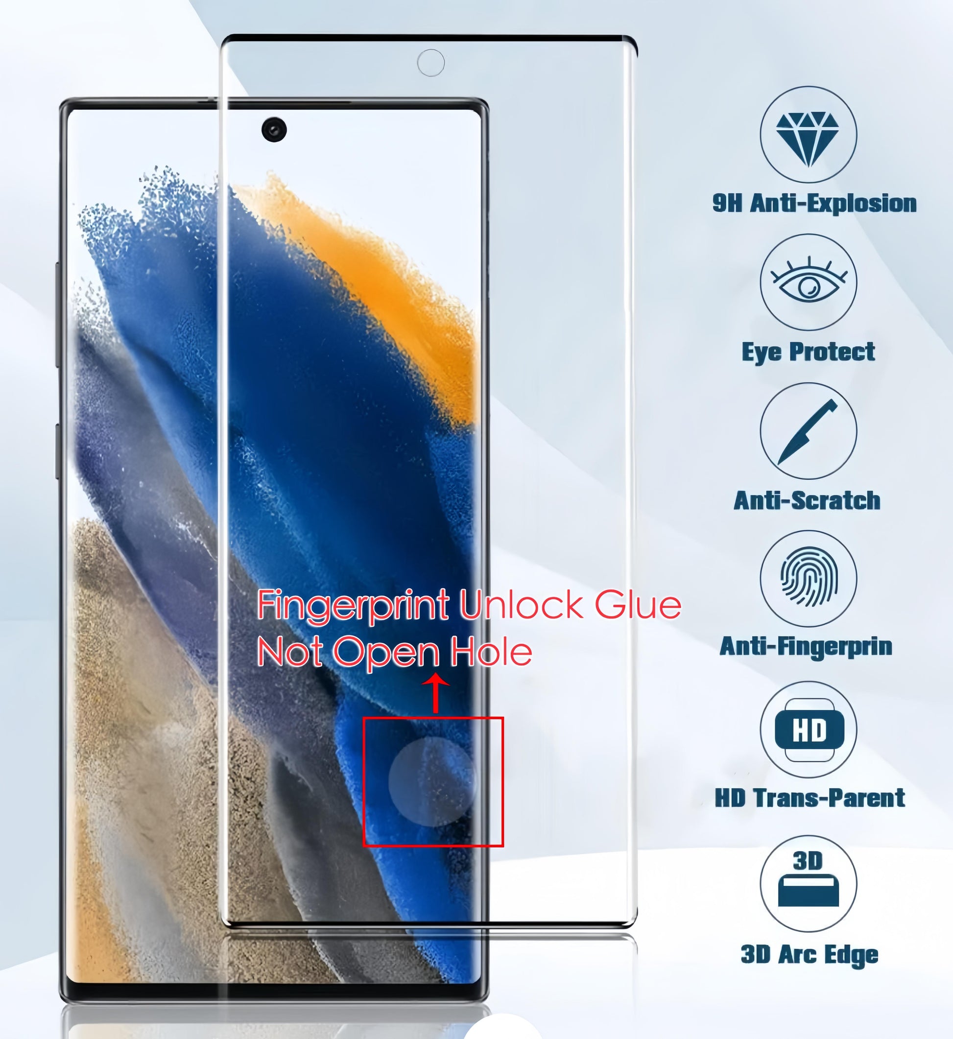 Regarding the circle of the tempered film fingerprint area, the glass tempered film applicable to Samsung requires this circle area to adhere tightly to the screen in order to support fingerprint recognition. Please install the tempered film correctly, and then re-enter the fingerprint. Our glass tempered film is currently an excellent solution to fingerprint recognition. In order to better protect the mobile phone screen, the tempered film has a certain thickness, so it needs to be stably glued to the mobile phone screen through the back glue in the fingerprint recognition area. Please confirm that this plan is acceptable before purchase.