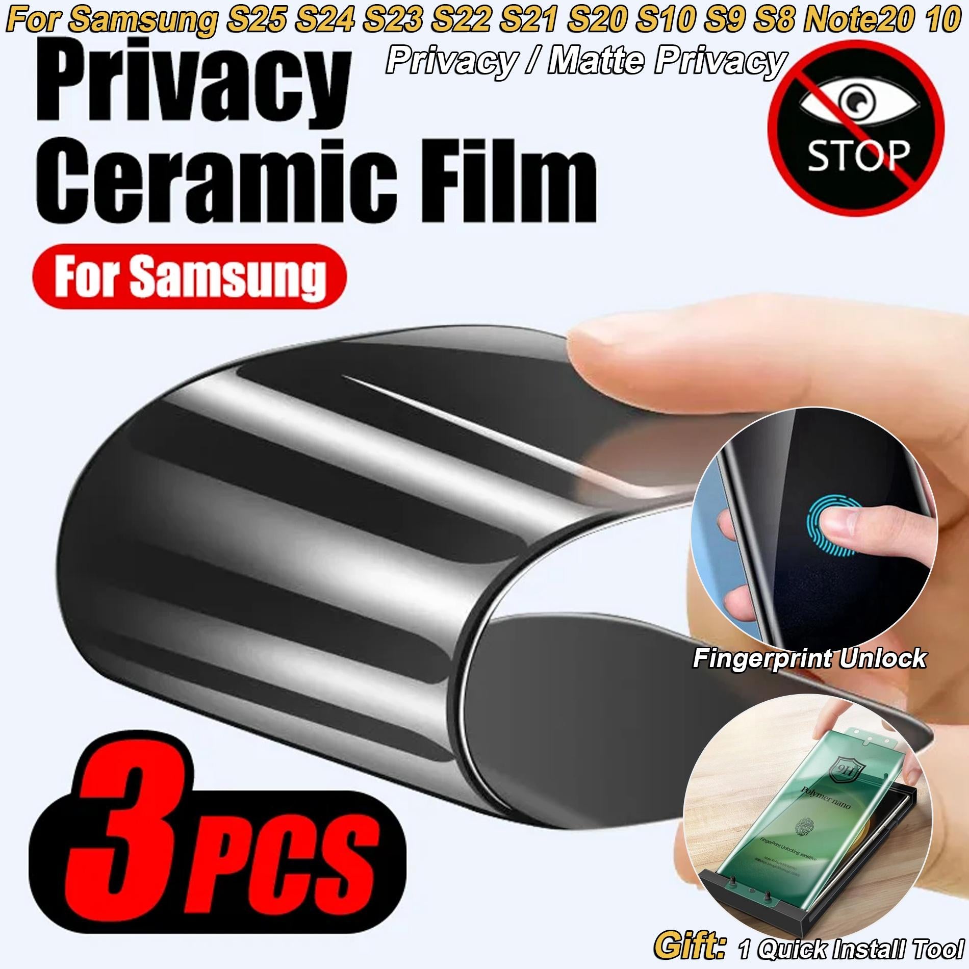 3 Pieces Matte Anti-Peeping Anti-Broken Screen Protection For Samsung S25Ultra S25 S24 S23 S22 S21 Note20 Plus Ultra Ceramics Soft Film Resilient Privacy Fingerprint Unlock No Glass
