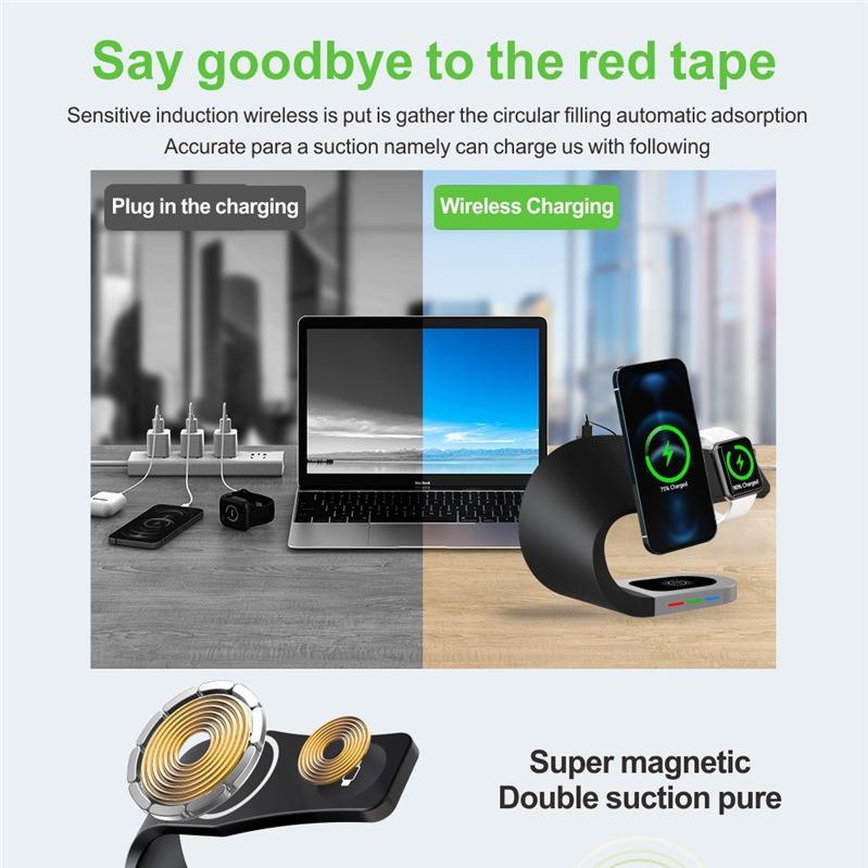【Wireless Charger】 This charging station can charge most phones, support fast charging for multiple devices at the same time, compatible for iPhone 13/13Pro/13 Pro Max/12/12 Pro/12 Pro Max/SE/XR/X/XS/XS Max/11 Pro Max/11 Pro/11/8 Plus/8 or Android; for AppleWatch 7/6/5/4/3/2/SE, for Airpods/earphones.