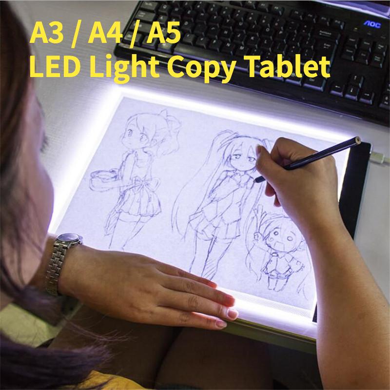 A3/A4/A5 Three Level Dimmable Led Light Pad Copy Drawing Board Pad Tablet Tracing Light Box Eye Protection Easier for Diamond Painting Children's Tools Kids Educational Electronics Writing Learning Pad