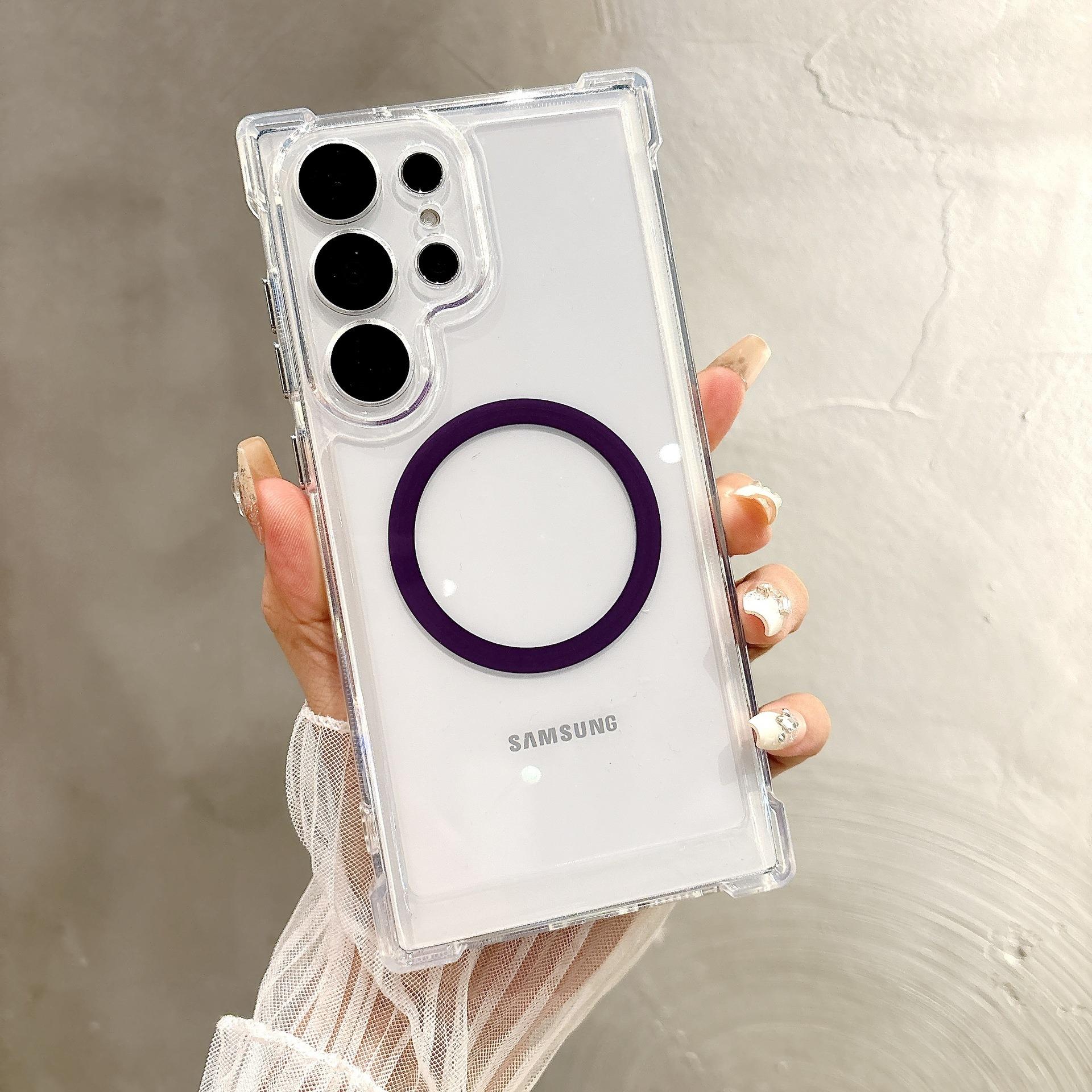 Acrylic Transparent Magnetic High Protection Four Corner Shockproof Phone Case For Samsung S25Ultra S25 S24 S23 S22 S21 Not Yellowing Clear Hard Full Cover