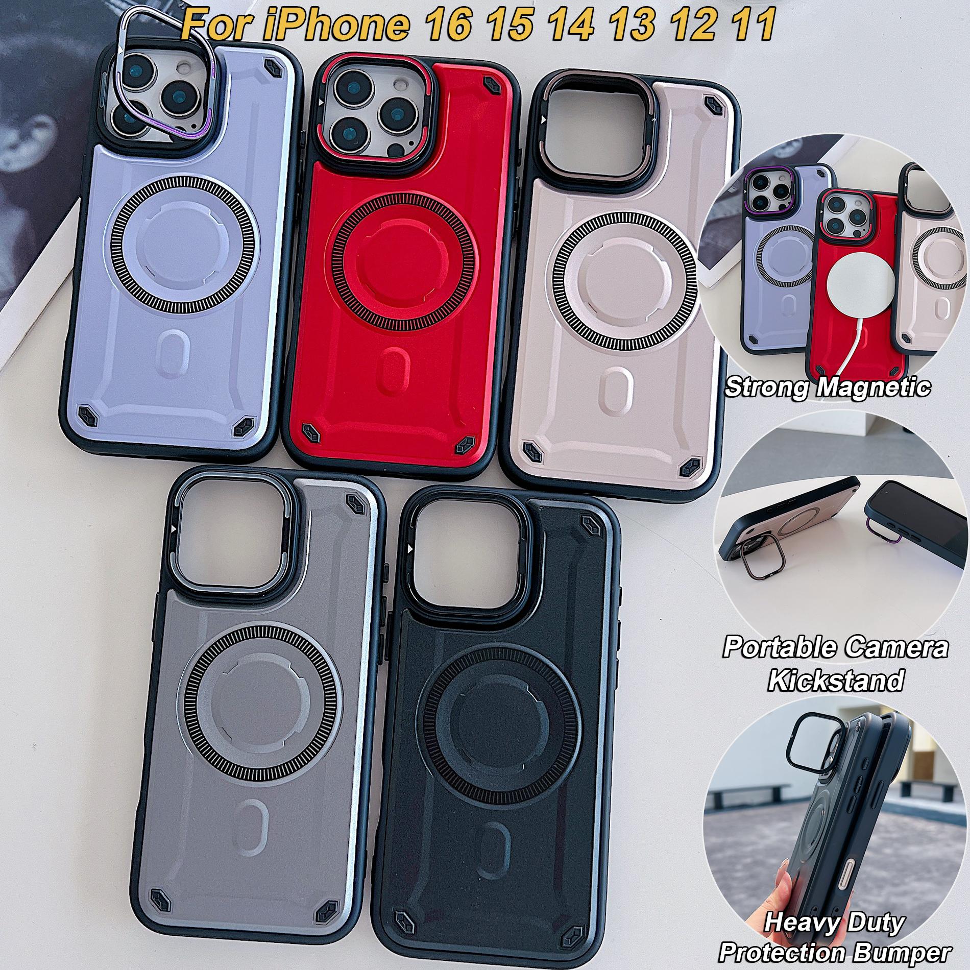Anti-Dust Anti-Fall Heavy Duty Protection Shockproof Strong Magnetic Phone Case With Camera Kickstand for iPhone 16ProMax 16 15 14 13 12 11 Bumper Matte Hard Cover