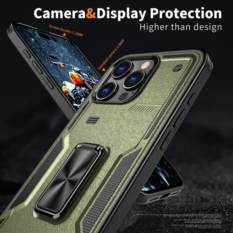 Anti-Dust Matte Anti-Fall Heavy Duty Protection Shockproof Phone Case With Kickstand for iPhone 16ProMax 16 15 14 13 12 11 XR Bumper Hard Full Cover