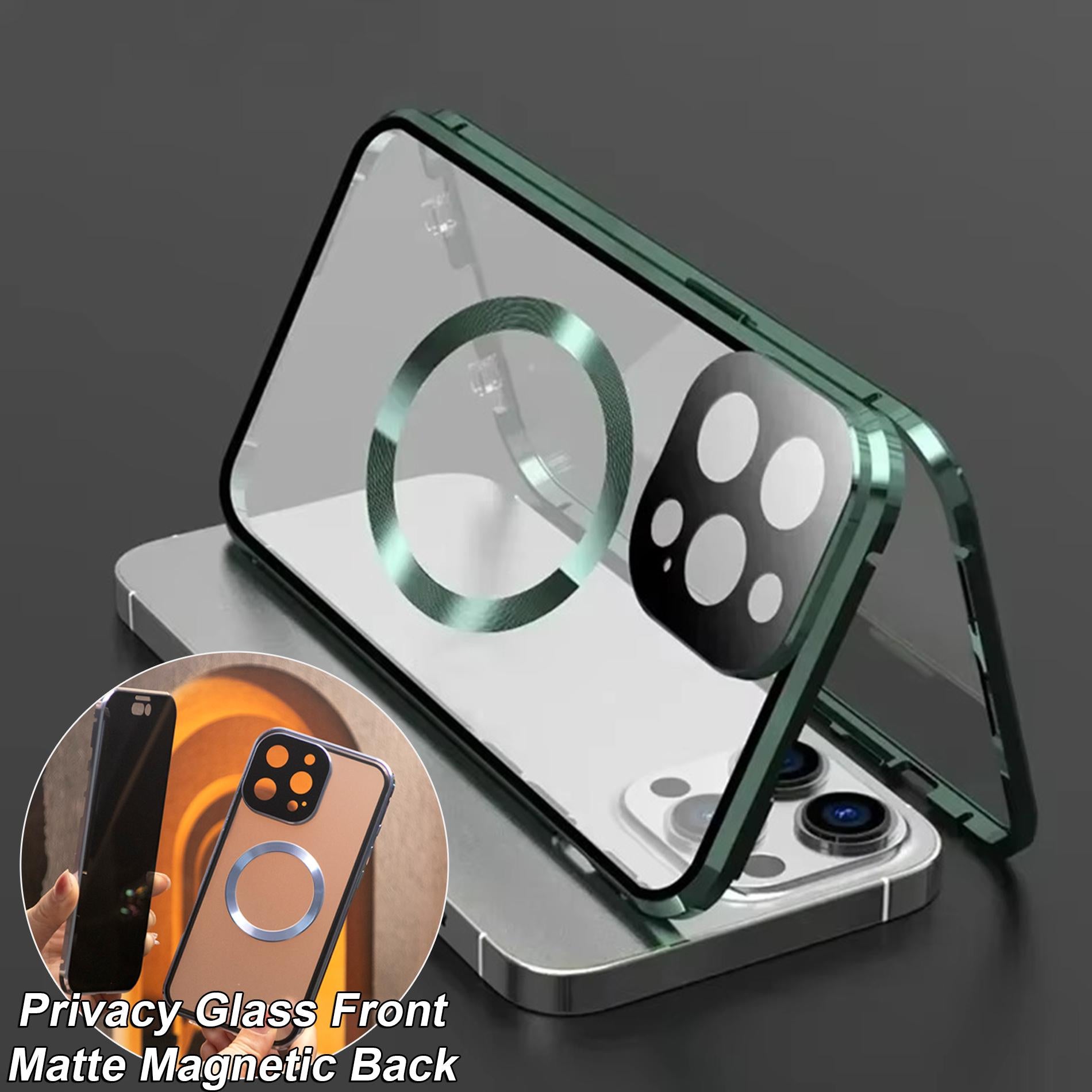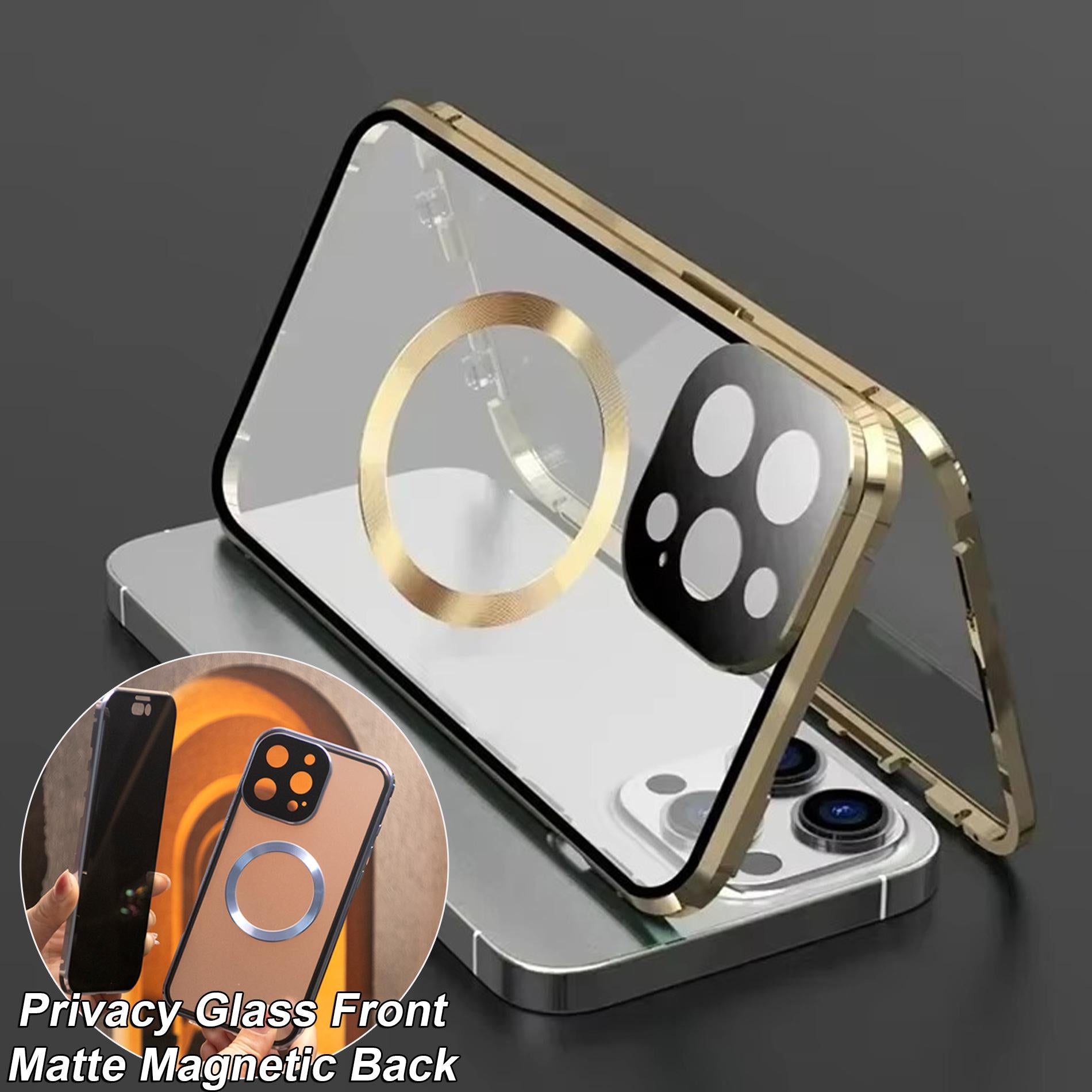 Anti Peeping Magnetic Double Sided Full Cover Privacy Metal Bumper Glass Case for iPhone 16ProMax 16 15 14 13 Pro Max 12 Antispy Magnetic Ring Support Wireless Charging Back Cover