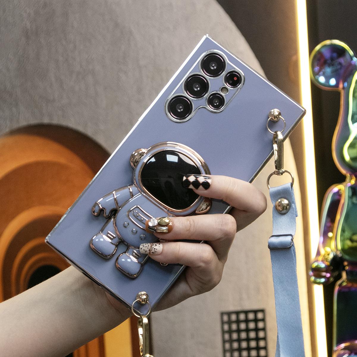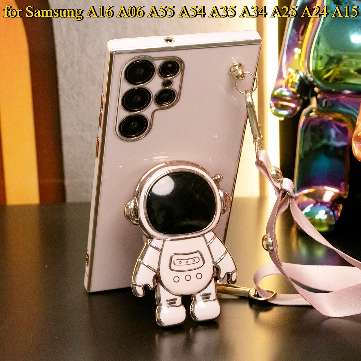 Astronaut Holder Crossbody Lanyard Phone Case for Samsung A16 A06 A55 A54 A35 A34 A25 A24 A15 Soft TPU Back Cover