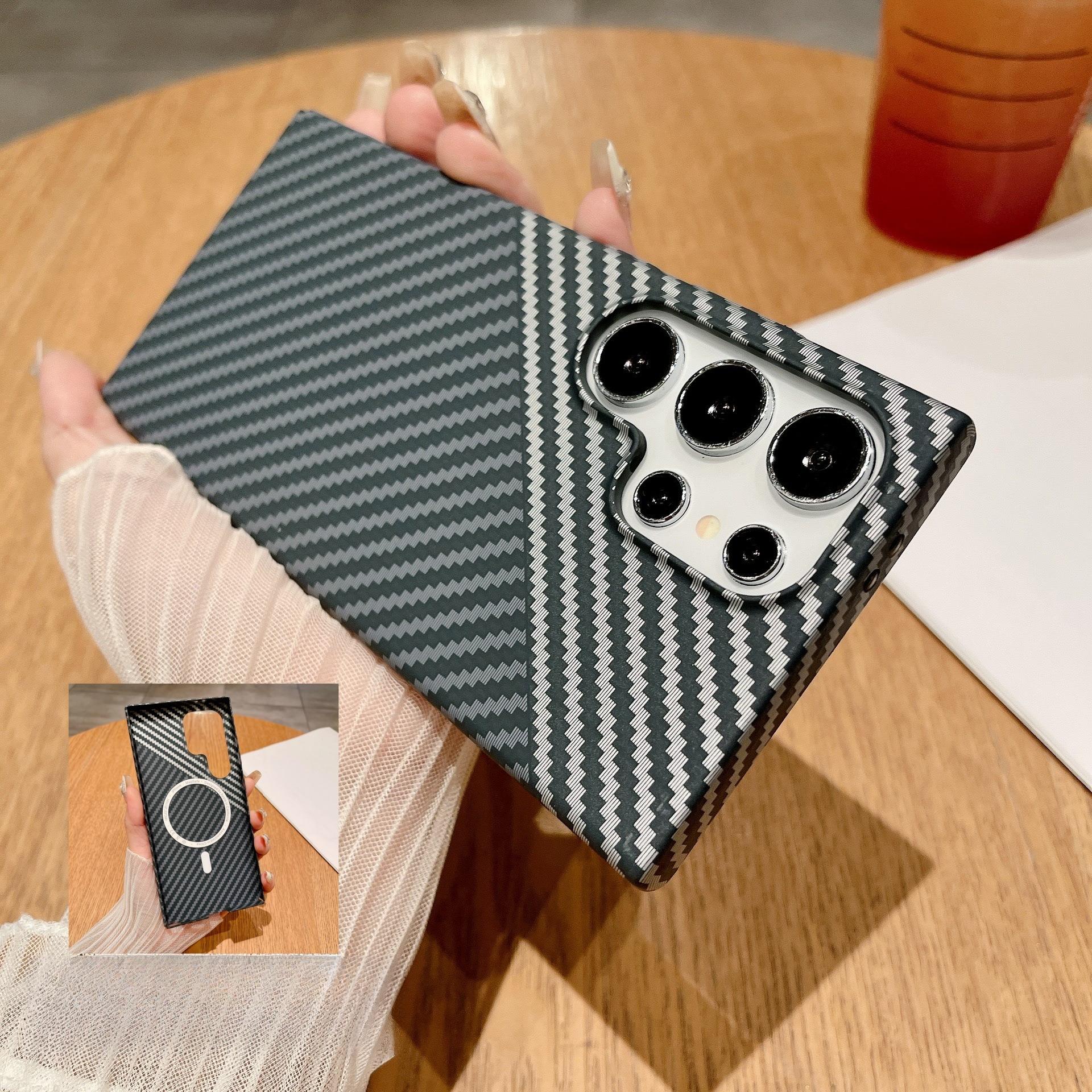 Carbon Fiber Matte Strong Magnetic Ultra Thin Light Phone Case For Samsung S25Ultra S25 S24 S23 S22 Note20Ultra Note10Plus Support Wireless Charging Hard Full Cover