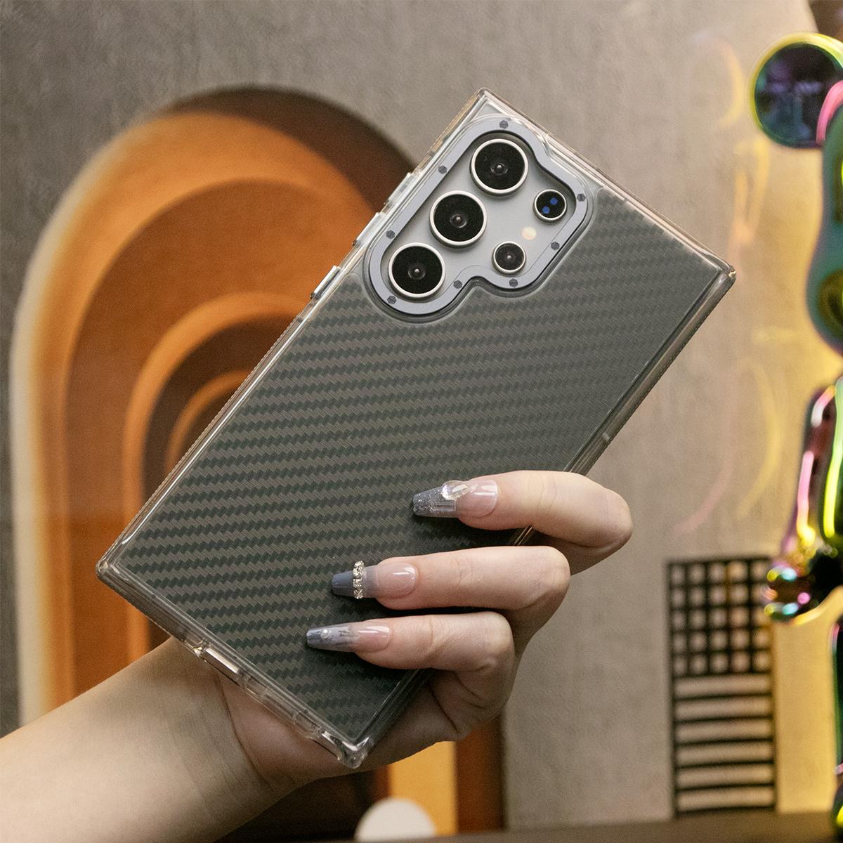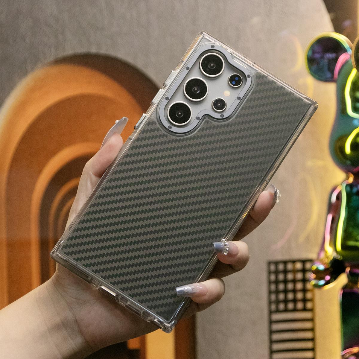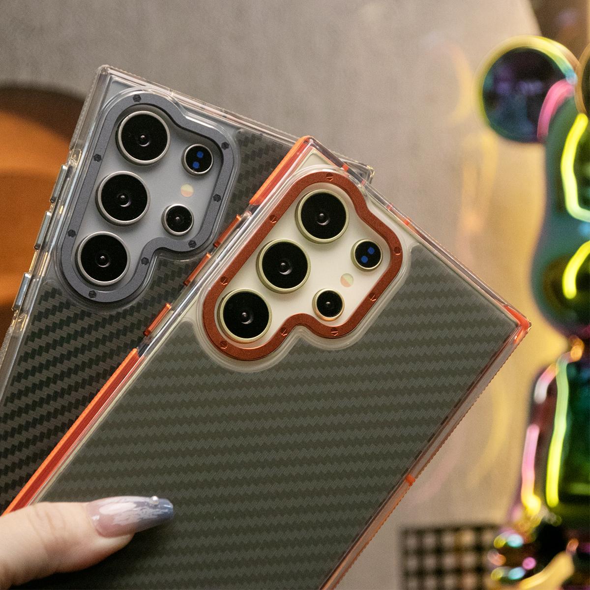 Carbon Fiber Pattern Phone Case, Metal Hardware Camera Protective Acrylic Cover, Clear No Yellow, With Shockproof  Anti-Fall Bumper For Samsung S24 S23 S21FE A14 A15 A24 A25 A35 A54 A55 A05