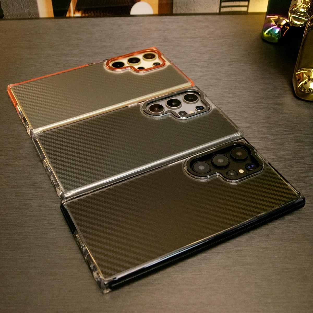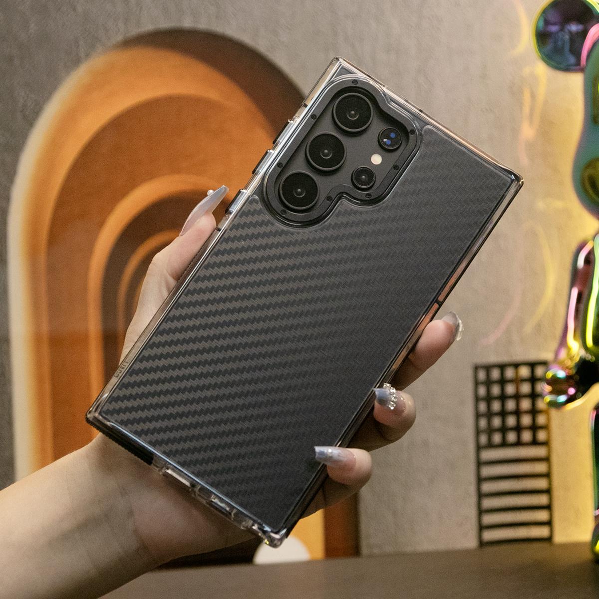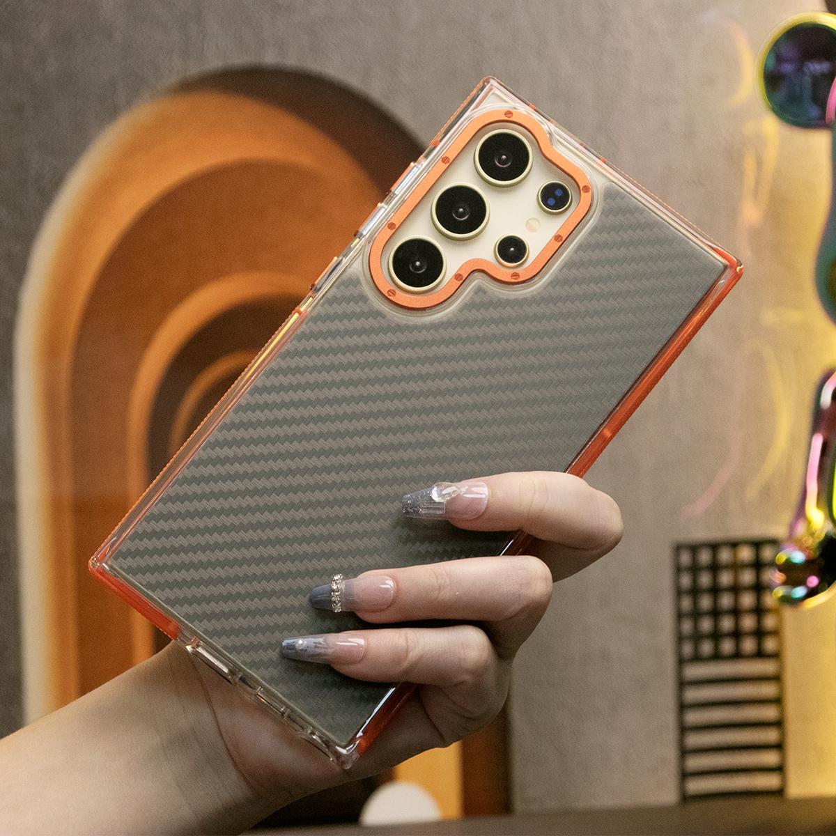 Carbon Fiber Pattern Phone Case, Metal Hardware Camera Protective Acrylic Cover, Clear No Yellow, With Shockproof  Anti-Fall Bumper For Samsung S24 S23 S21FE A14 A15 A24 A25 A35 A54 A55 A05