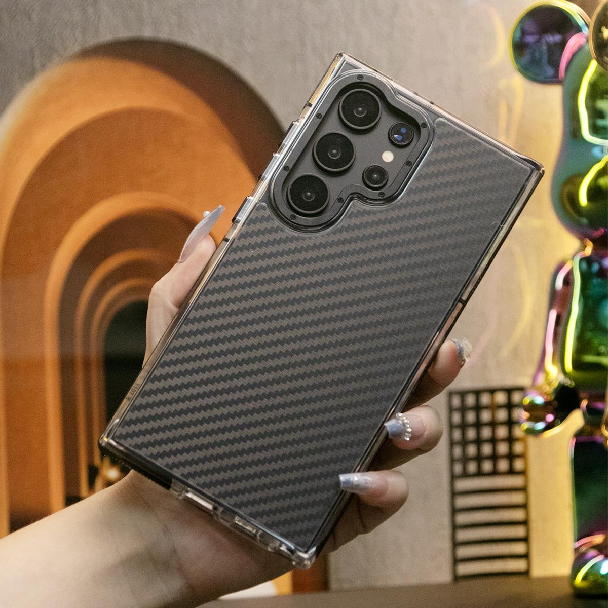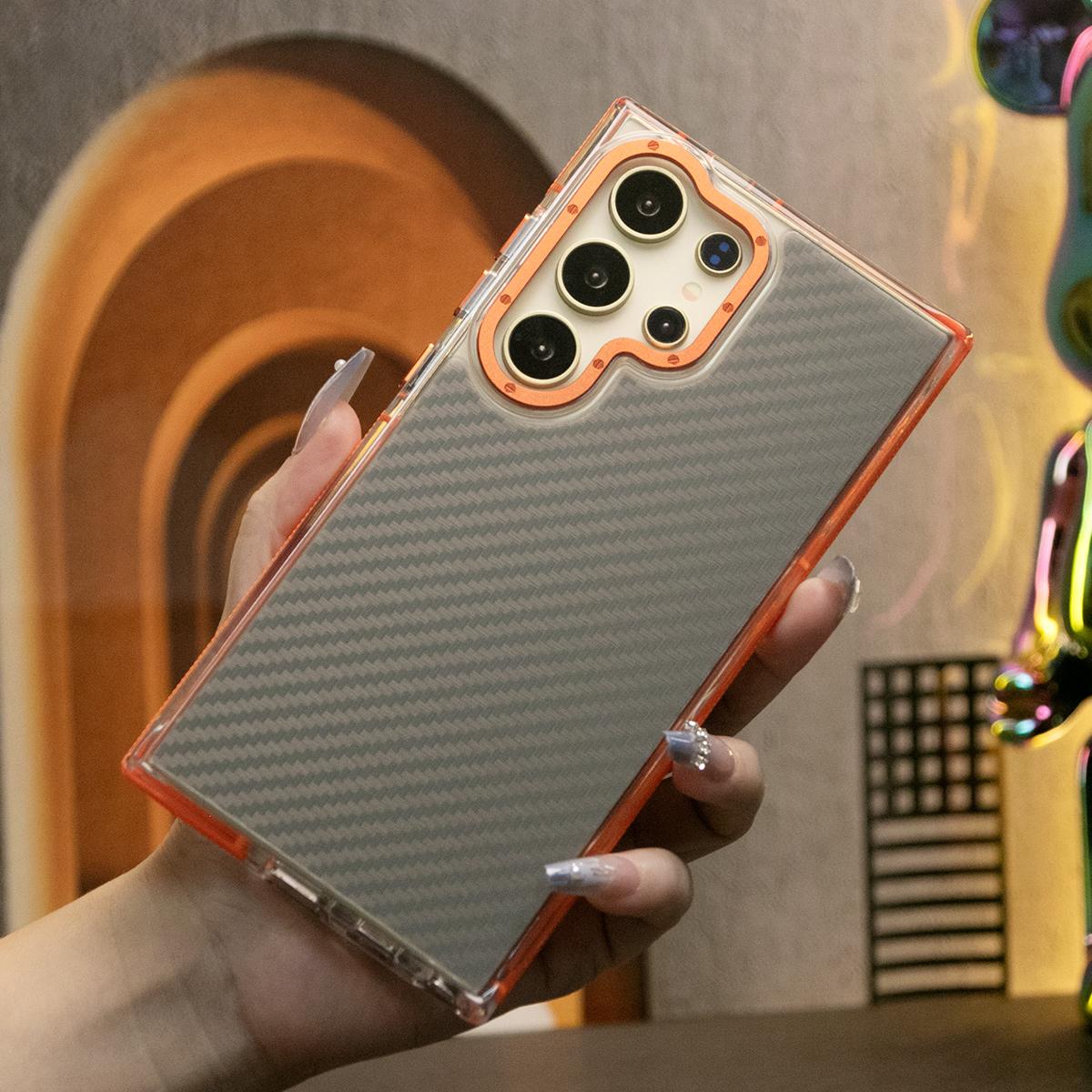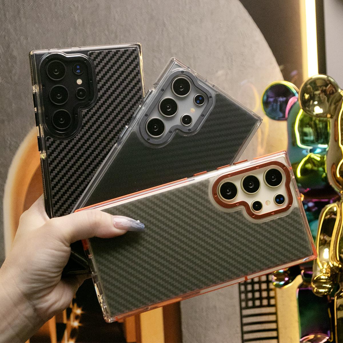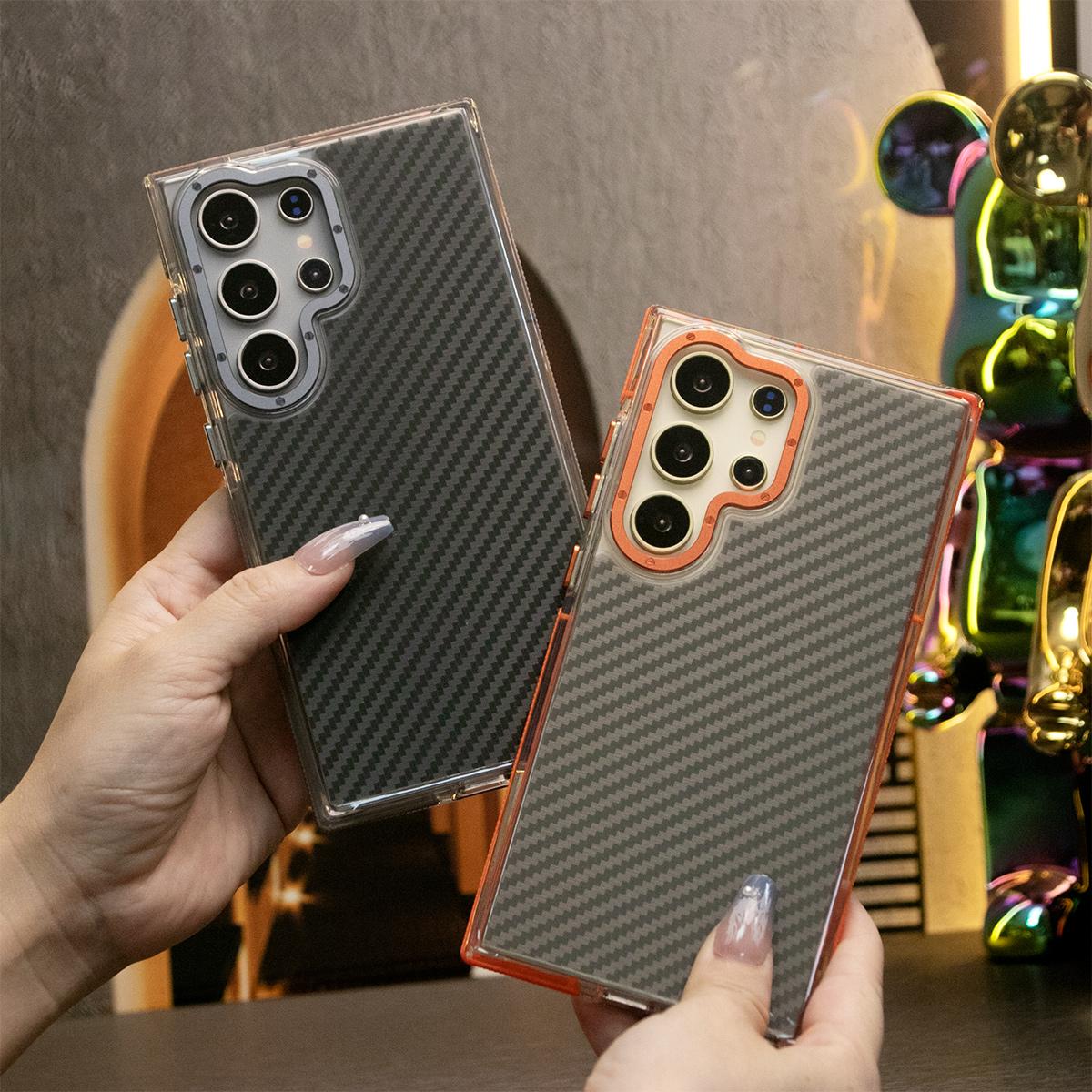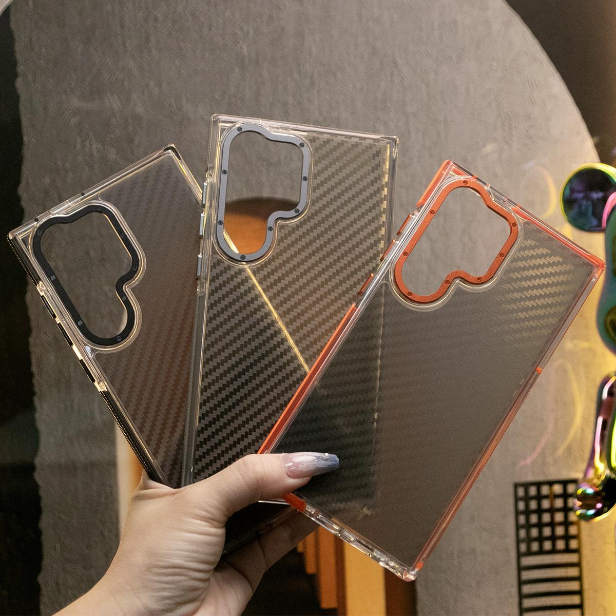Carbon Fiber Pattern Phone Case, Metal Hardware Camera Protective Acrylic Cover, Clear No Yellow, With Shockproof  Anti-Fall Bumper For Samsung S25Ultra S24 S23 S21FE A14 A15 A24 A25 A35 A54 A55 A05