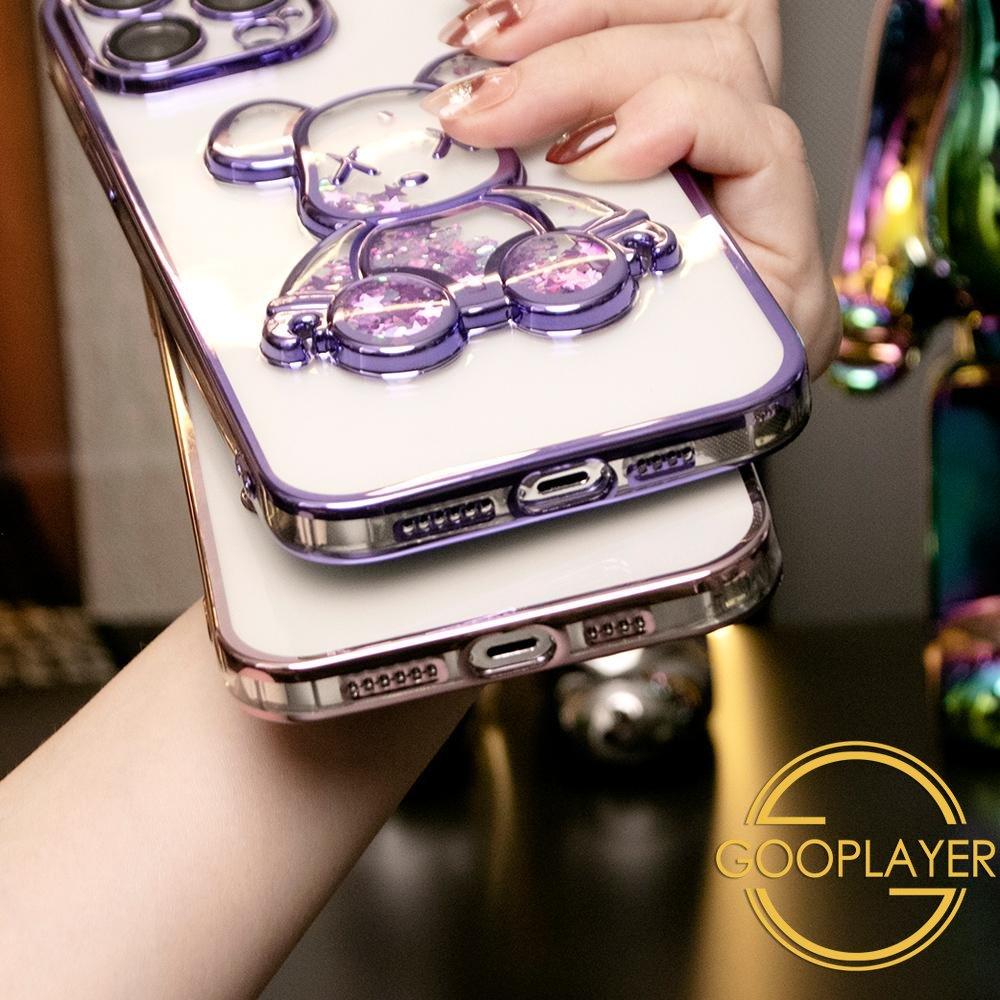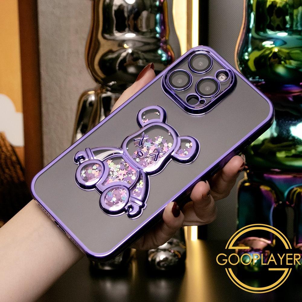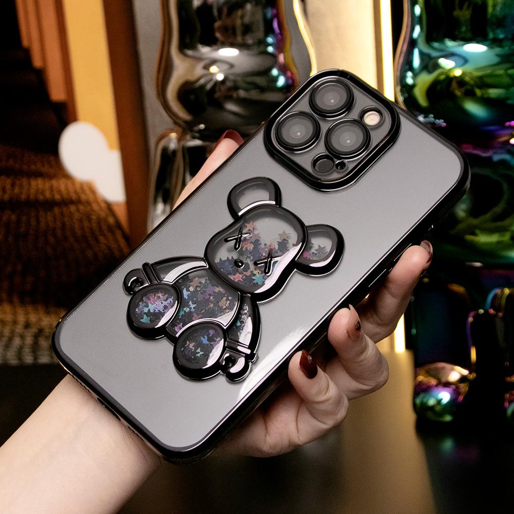 Cartoon Glitter Quicksand Bear Phone Case for iPhone 16 15 14 13 12 Pro Max