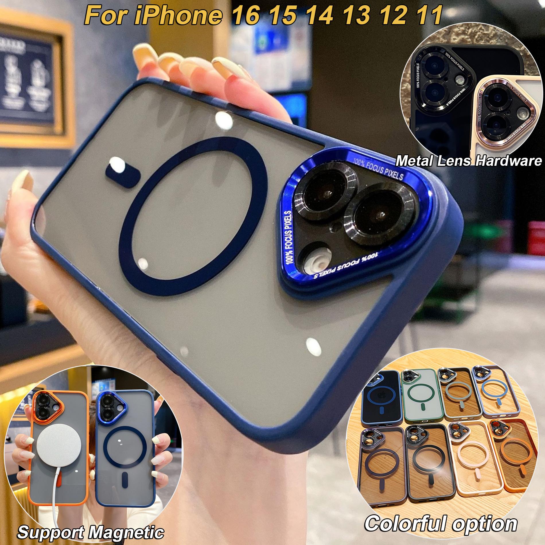 Crystal High Definition Clear Magnetic Phone Case For iPhone 16ProMax 16 15 14 13 12 11 Pro Max Plus Transparent HD Metal Len Protection Hardware Hard Full Cover
