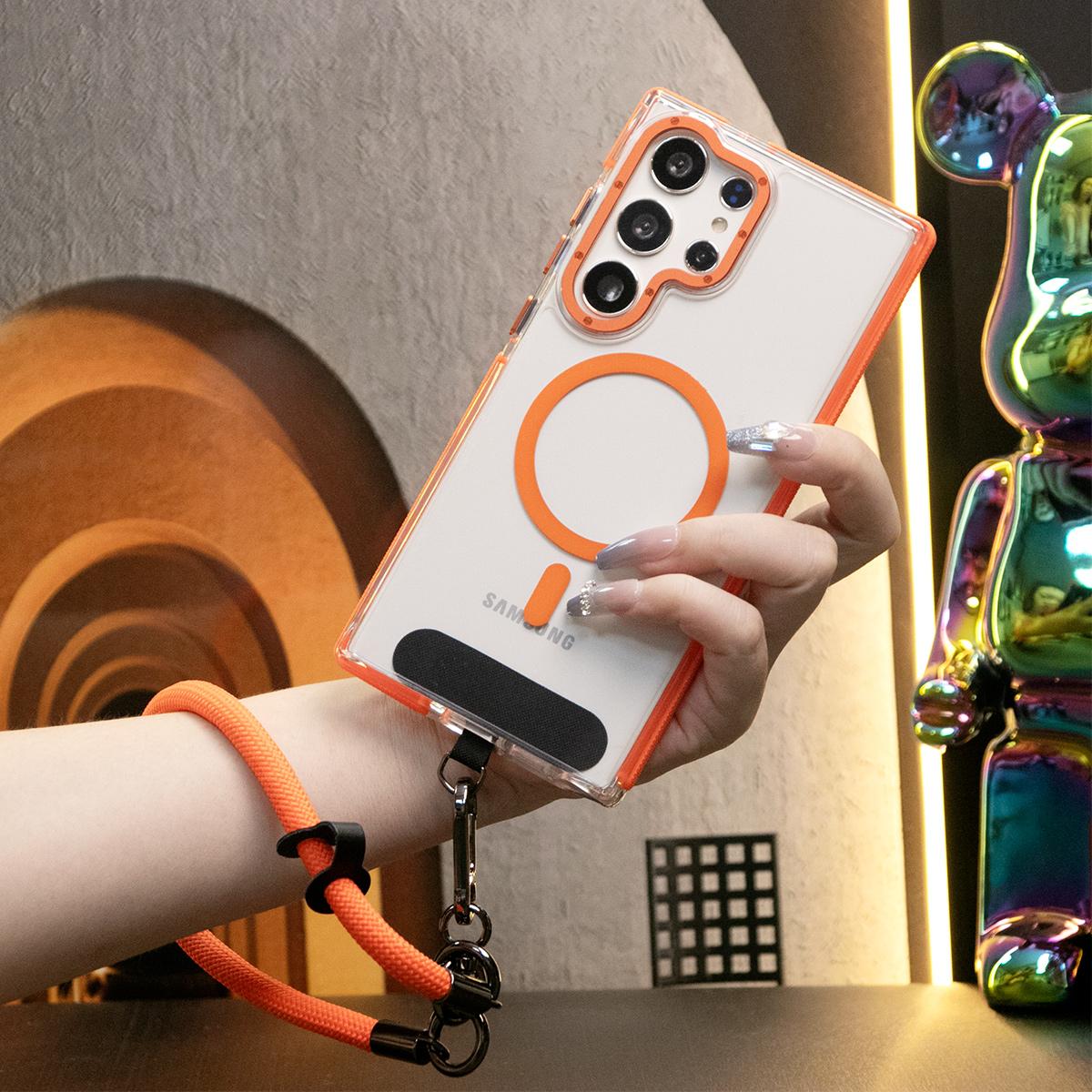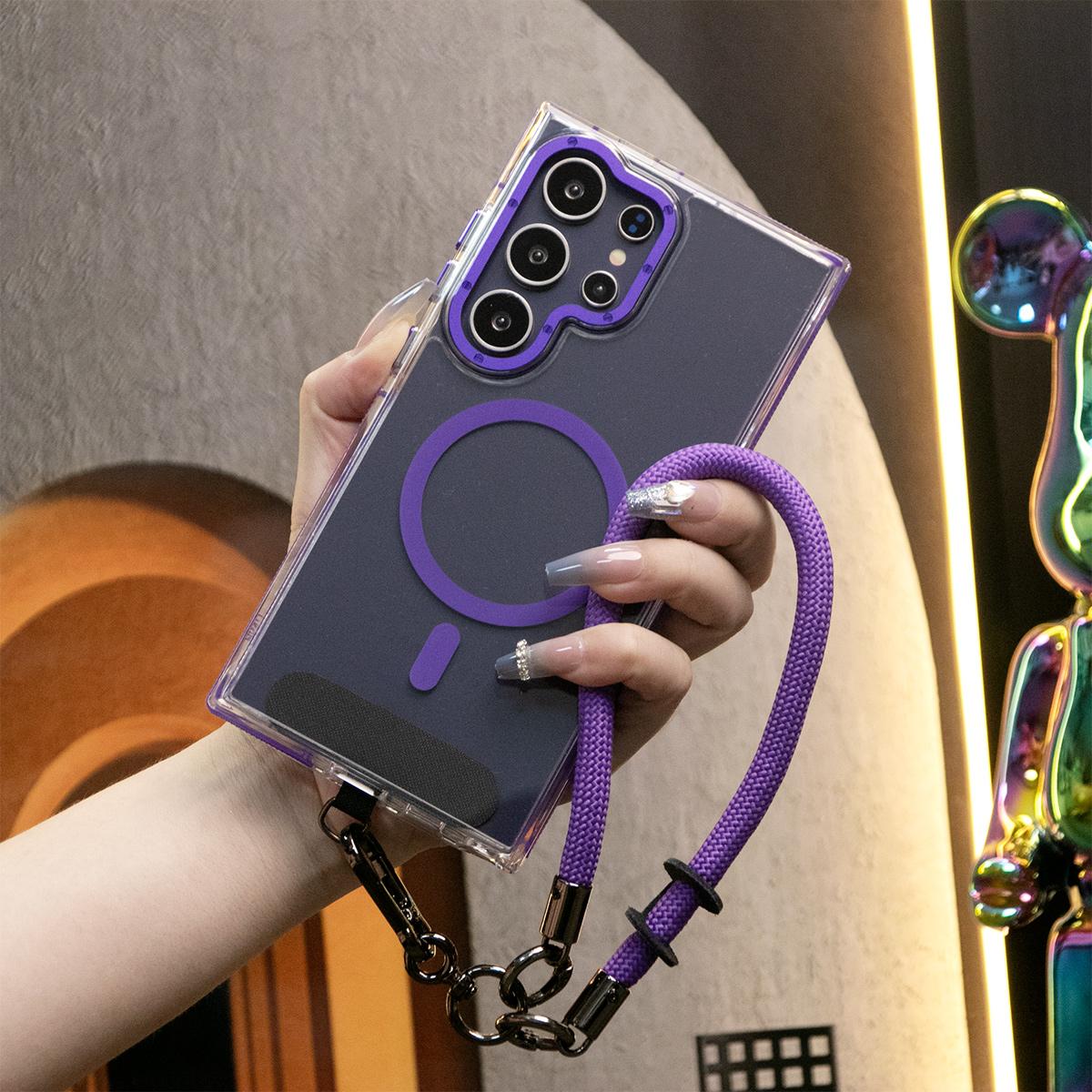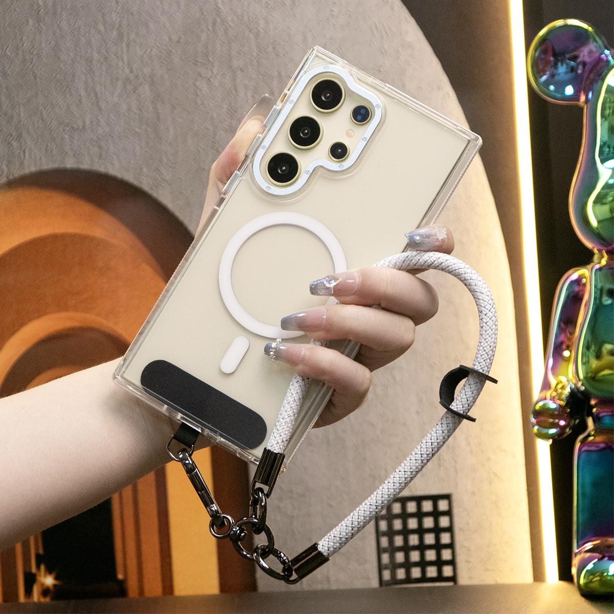 Dual Color Magnetic Clear Shockproof Phone Case For Magsafe Wireless Charging Case With Multifunctional Climbing Rope For iPhone 16 15 14 13 12 11 Pro Max Clear TPU Acrylic Bumper Hard Cover