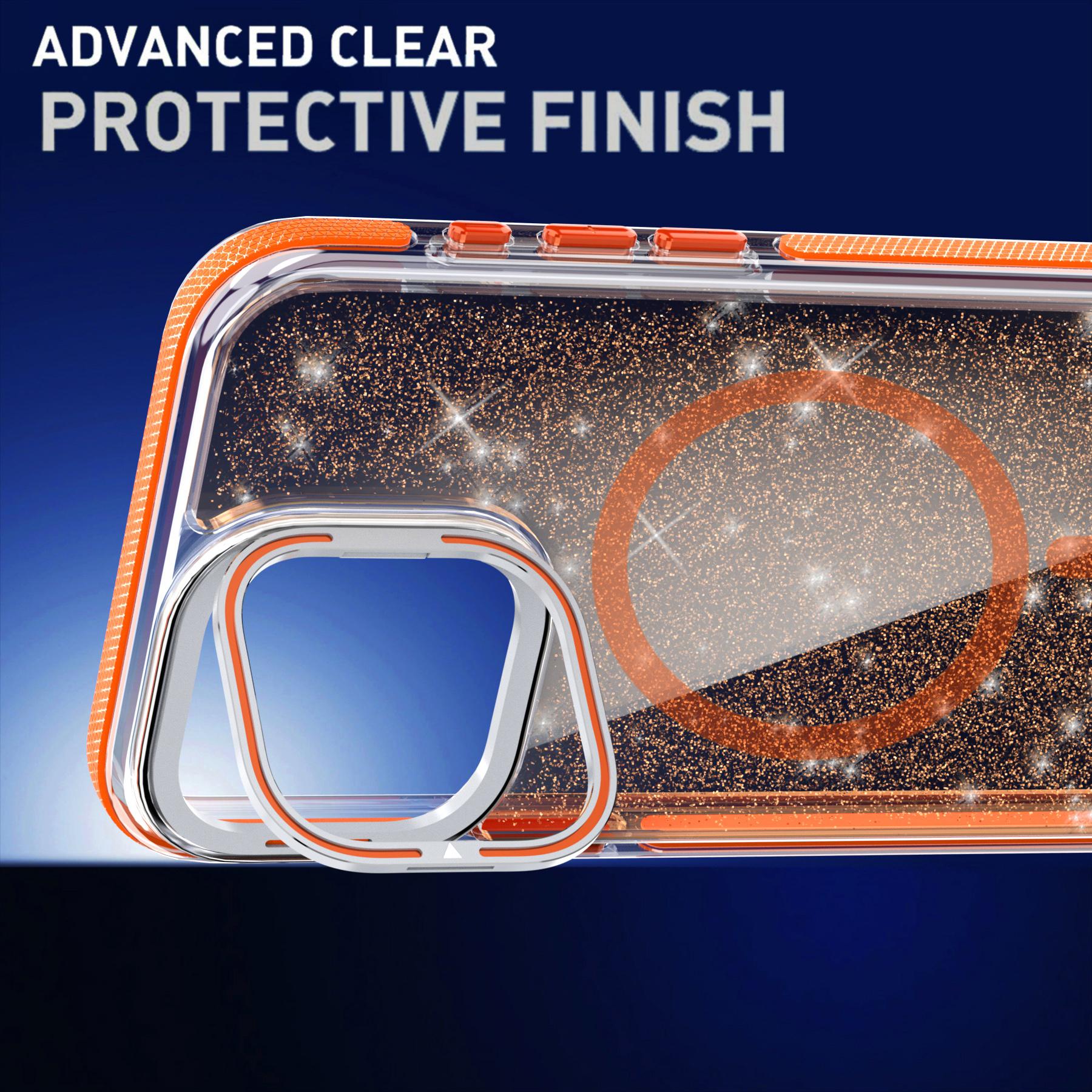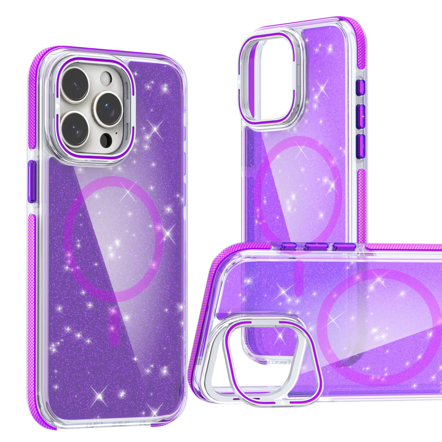 Dual Color Magnetic For Magsafe Wireless Charging Case With Glitter Powder For iPhone 16 15 14 13 12 11 Pro Max Plus Metal Hardware Camera Lens Stand Acrylic Hard Cover