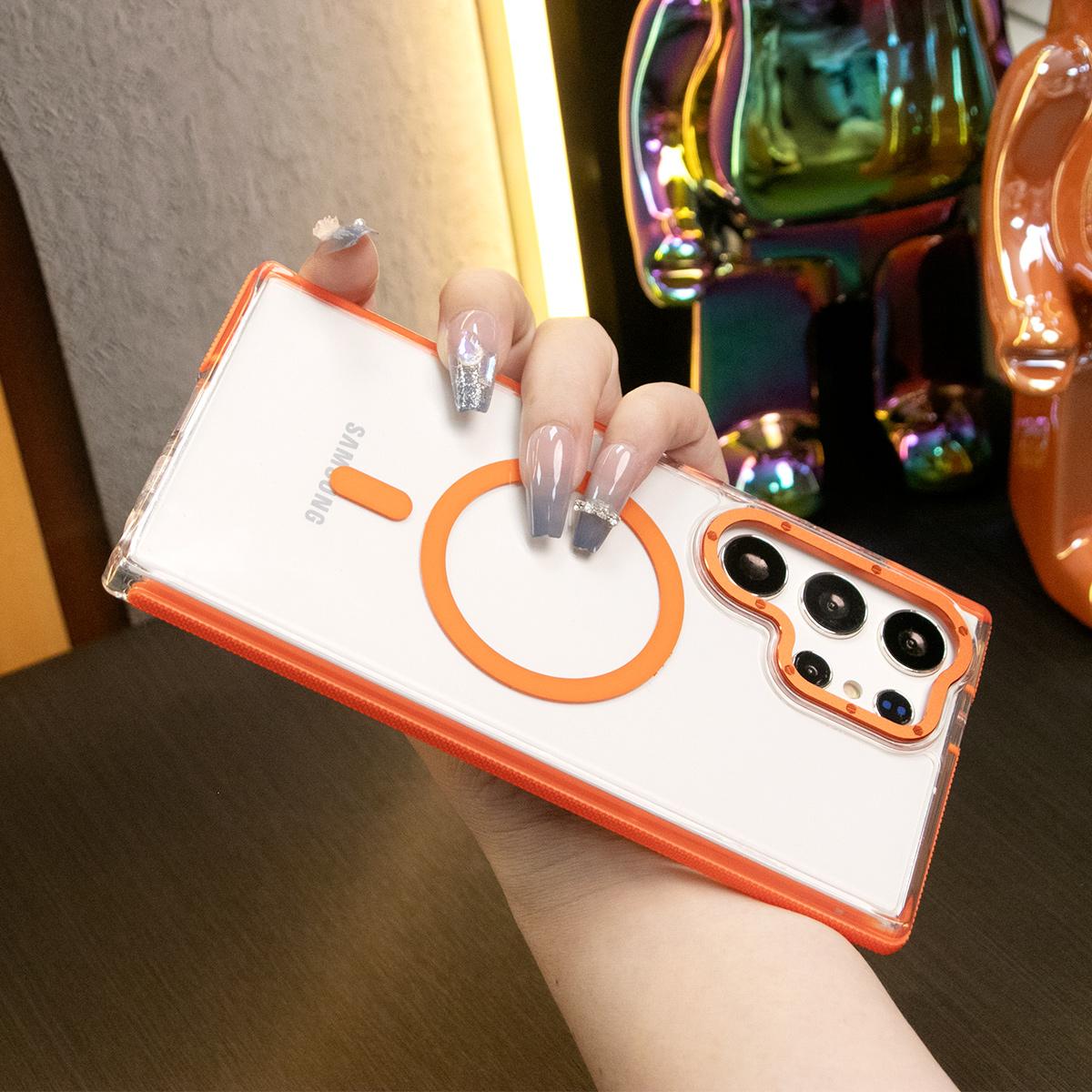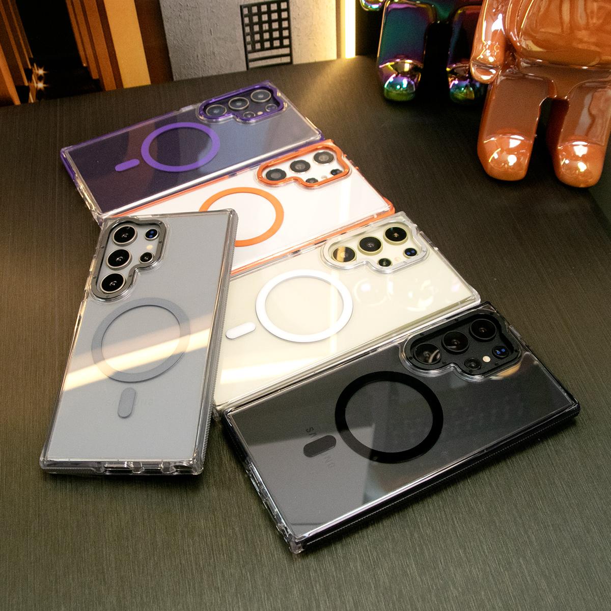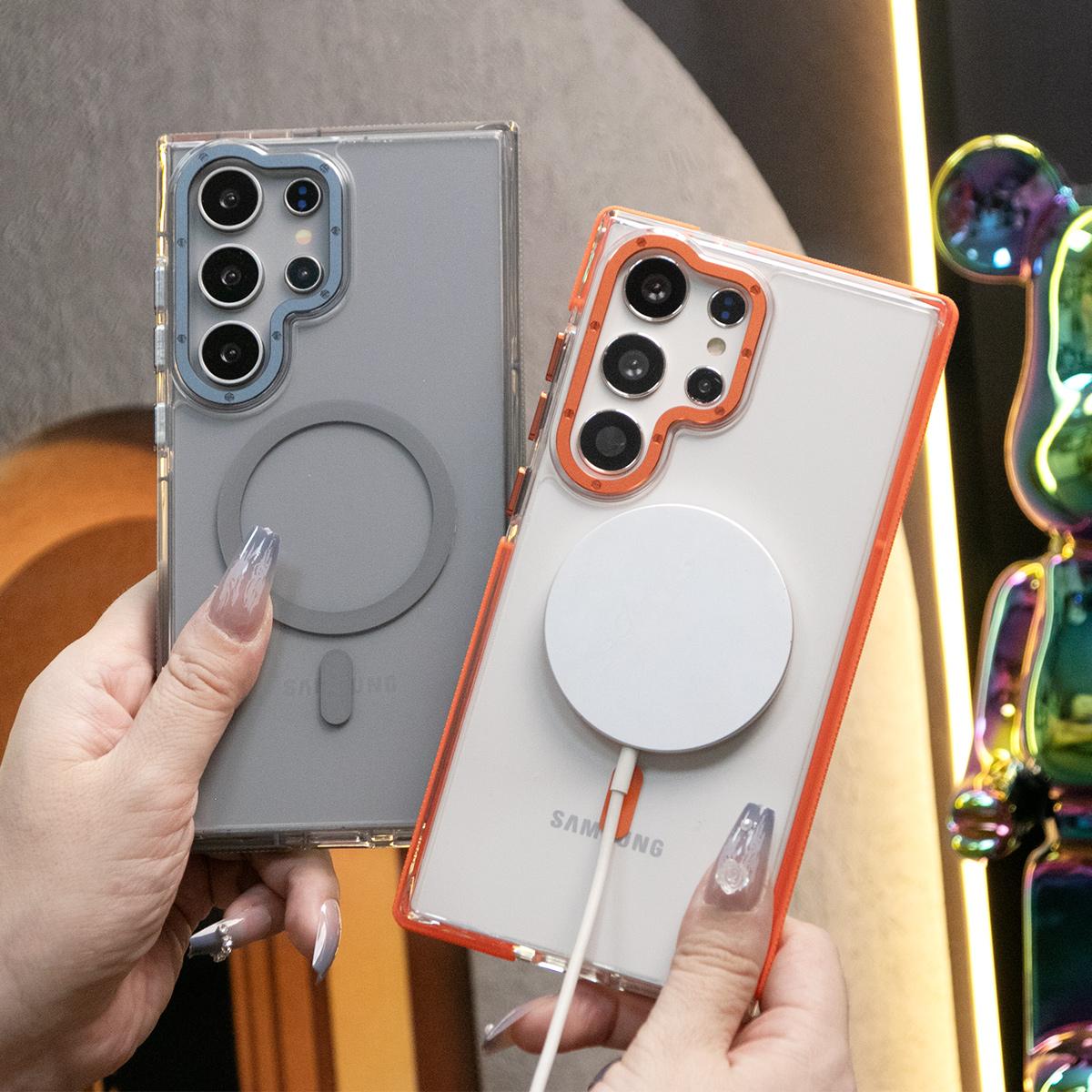 Dual Color Transparent Strong Magnetic For Magsafe Wireless Charging Phone Case For Samsung S24Ultra S24Plus S24 S23Ultra S23Plus S23 Clear Metal Frame TPU Shockproof Acrylic Hard Full Cover