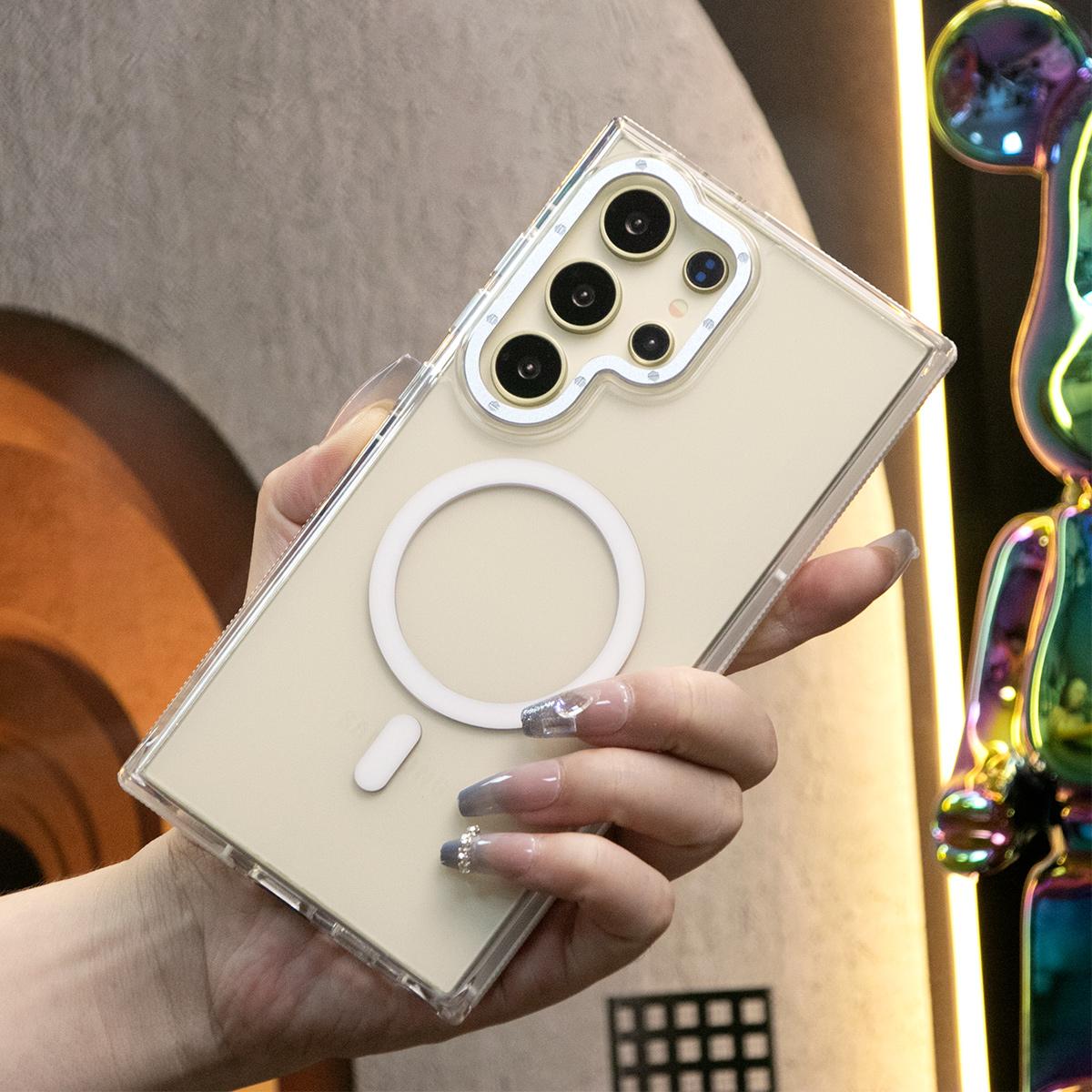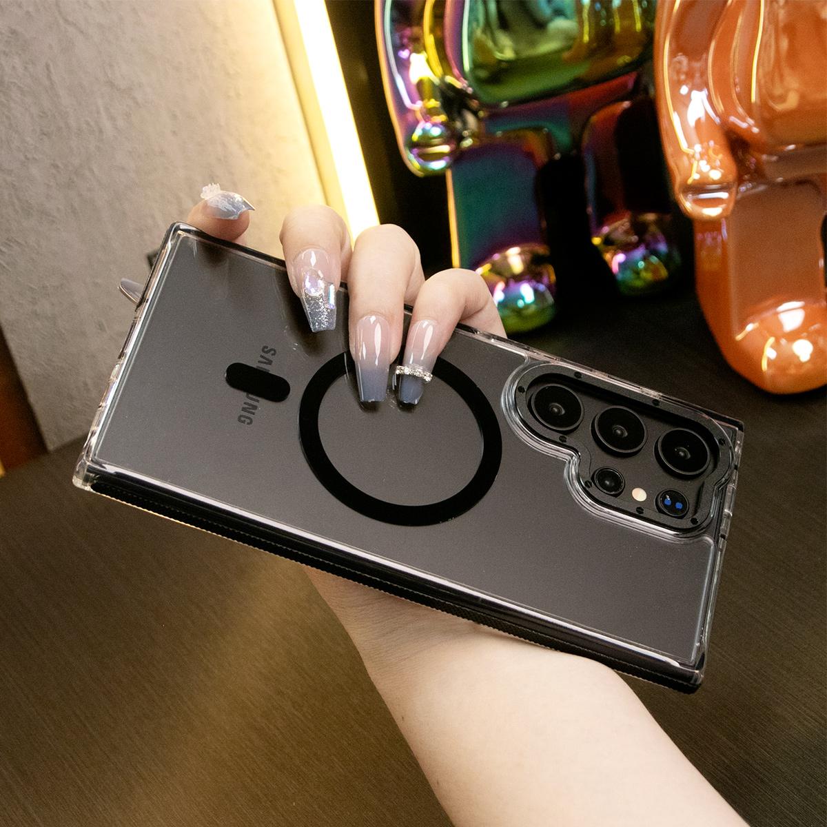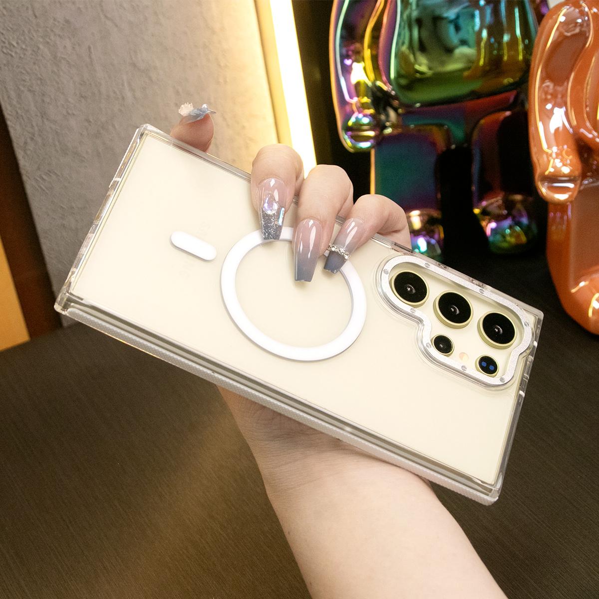 Dual Color Transparent Strong Magnetic For Magsafe Wireless Charging Phone Case For Samsung S24Ultra S24Plus S24 S23Ultra S23Plus S23 Clear Metal Frame TPU Shockproof Acrylic Hard Full Cover
