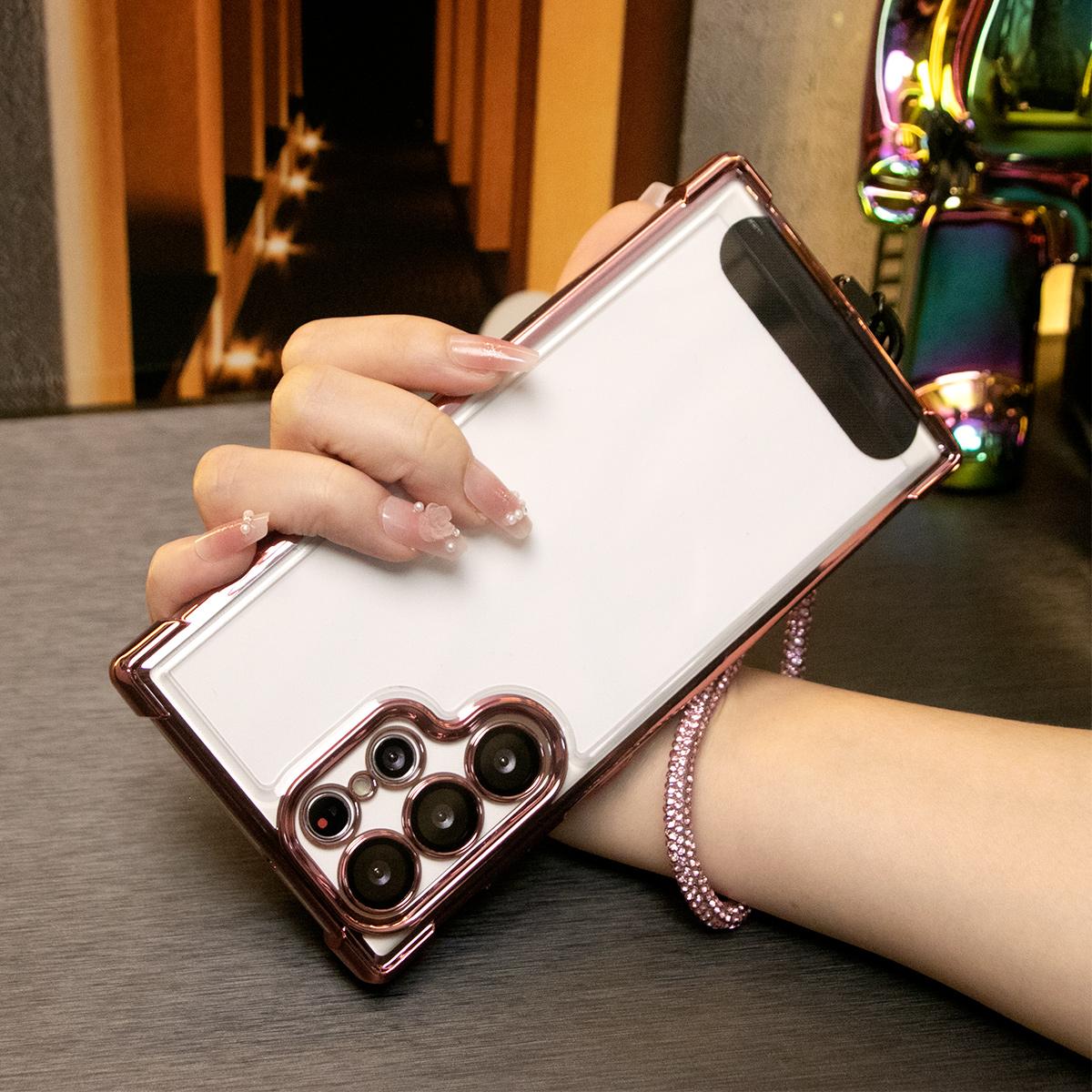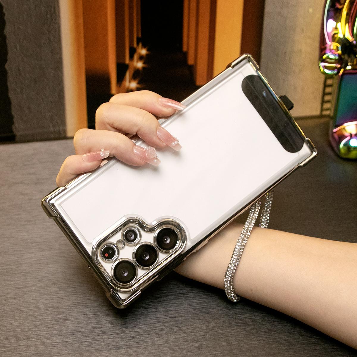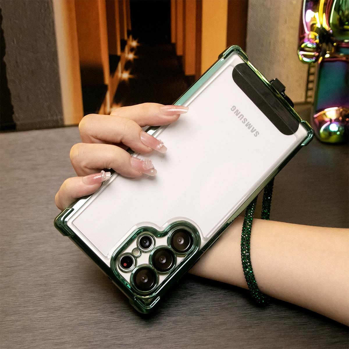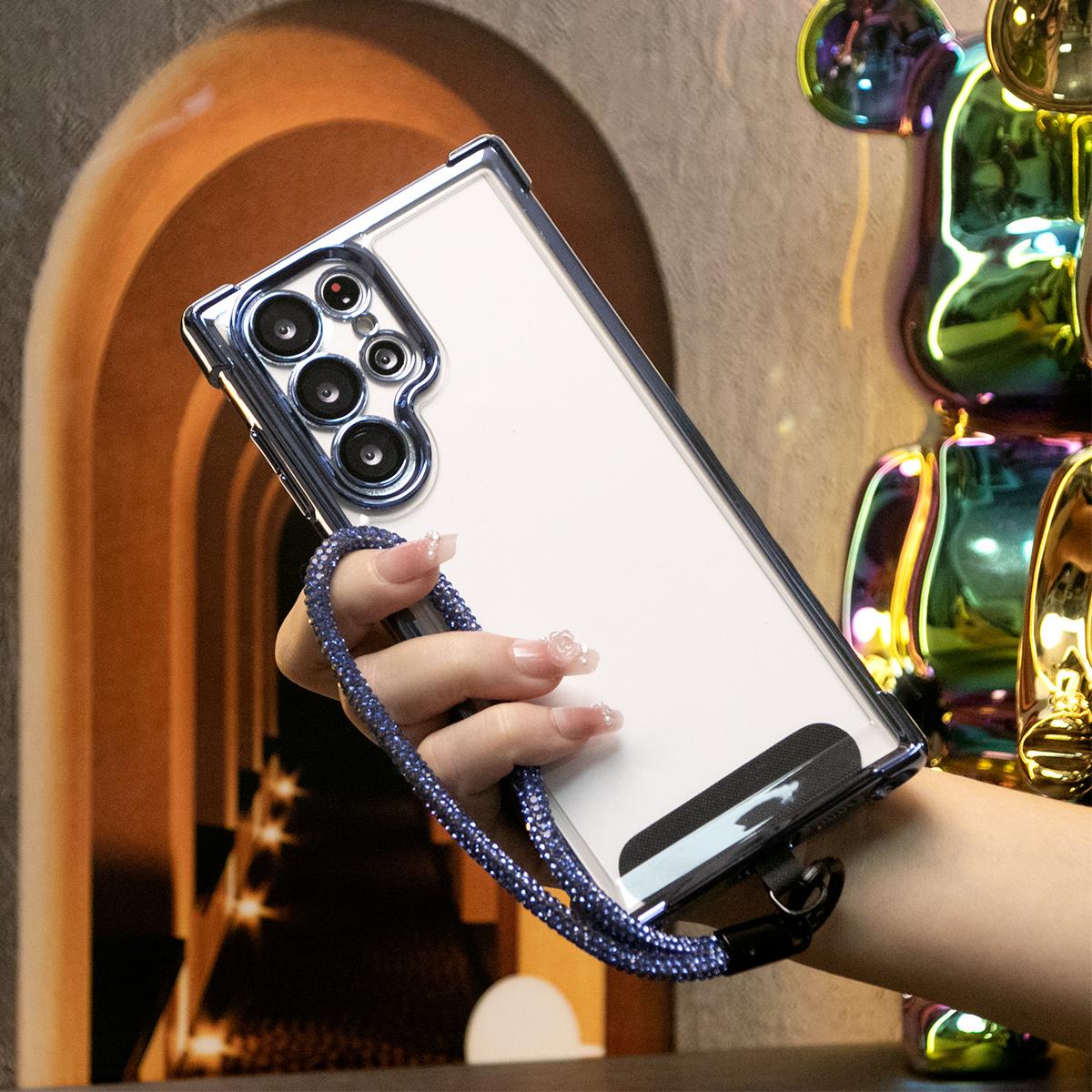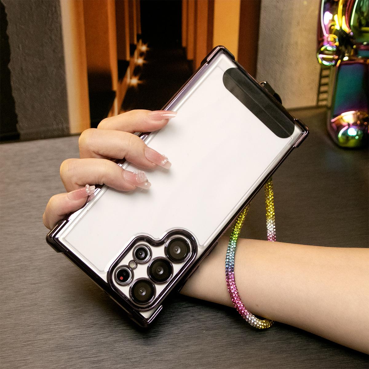 Electroplated Four Corners Anti-fall Transparent Hard PC Phone Case With Rhinestone Wristband For Samsung S24 Ultra S23FE S22 S22 Note20 Ultra , Full Cover with Camera Protector